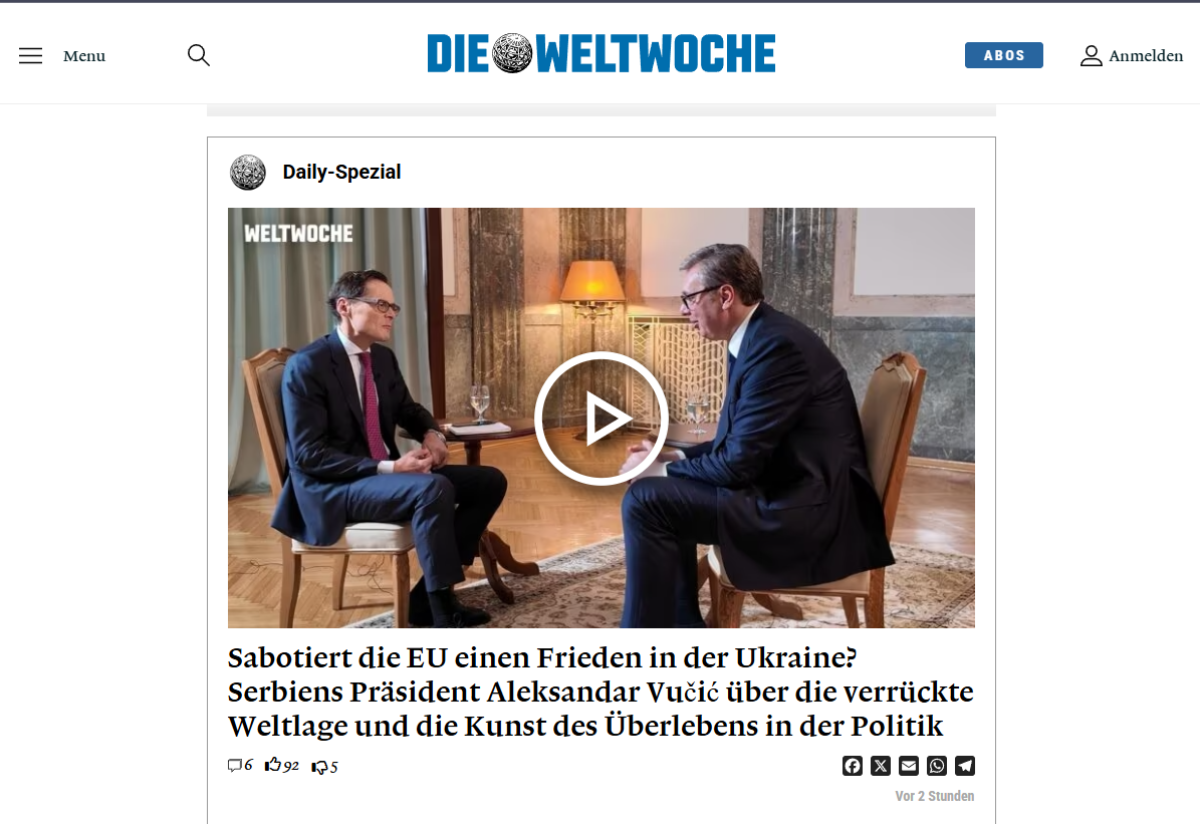 Predsednik Srbije Aleksandar Vučić gostovao je u večerašnjoj emisiji "Četvrtkom u 9" na Prvom programu RTS-a.