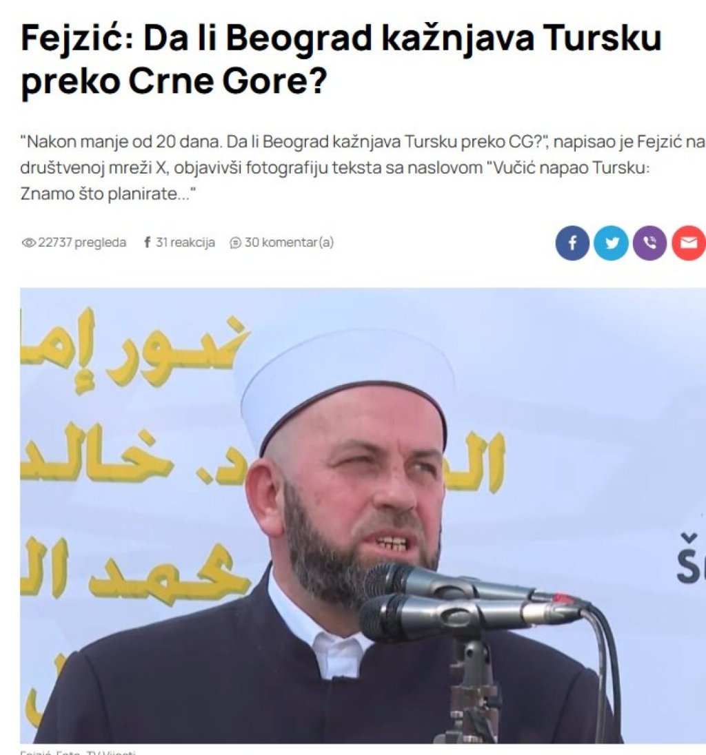 Podsetimo, ovo nije prvi put da iz Crne Gore stižu ovakvi napadi na račun naše zemlje i predsednika. Tako je nedavno Reis Islamske zajednice u Crnoj Gori, Rifat Fejzić, na sraman način povezao sukob grupe Turaka i Crnogoraca u Podgorici sa predsednikom Srbije Aleksandrom Vučićem.