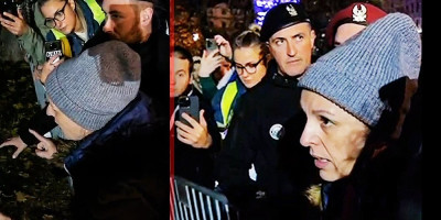 - Prokleću vas sve! Neće ostati niko živ, biće krvi do kolena. Ako hoćete, momci, da ne odete kući ni vi ni ja, nije problem, ja sam spremna... Ja sam izgubila, a ne znam da li ste vi spremni da izgubite?! Da li ste spremni? - govori Dijana Hrka obraćajući se policajcima koji su telima od blokadera branili građane okupljene u takozvanom Ćacilendu na Trgu Nikole Pašića.