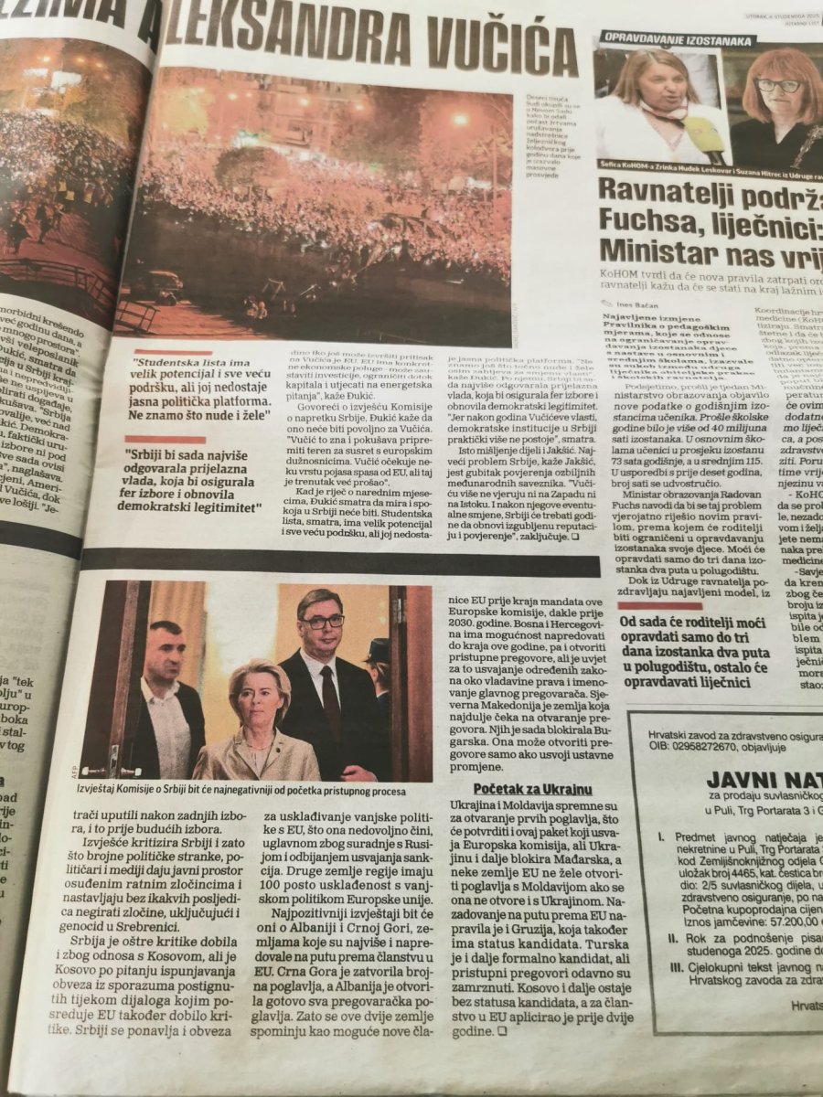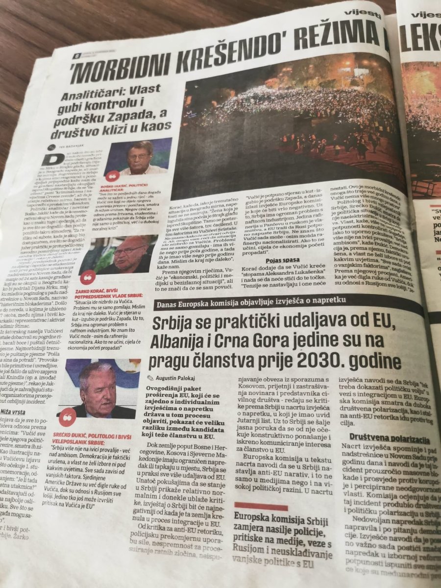 Hrvati su objavili skandalozni tekst pod naslovom: '''Morbidni krešendo' režima Aleksandra Vučića'', u kom njihovi analitičari ''konstatuju'' da je ''Vučić izgubio kontrolu i podršku Zapada, i da društvo klizi u haos''.