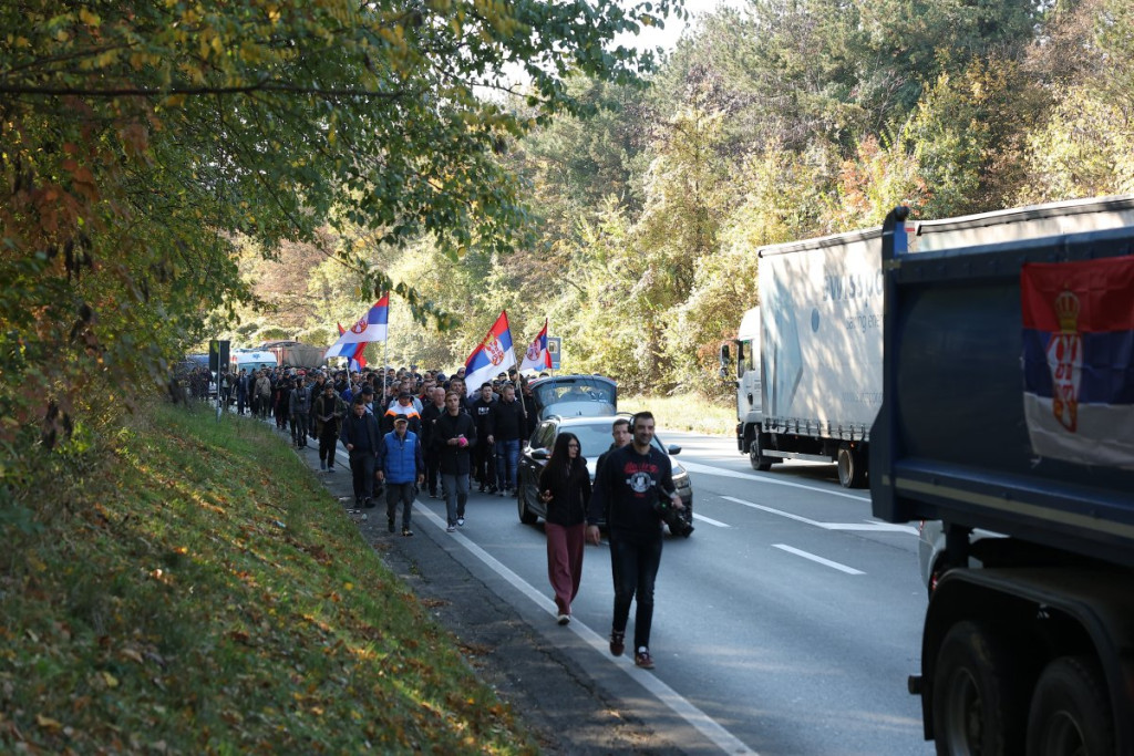 Na delu Ibarske magistrale je zbog šetnje Srba sa KiM usporen saobraćaj. Ta grupa je krenula 29. oktobra pešice ka Novom Sadu da podrži predsednika Srbije Aleksandra Vučića i veliki narodni skup protiv blokada.