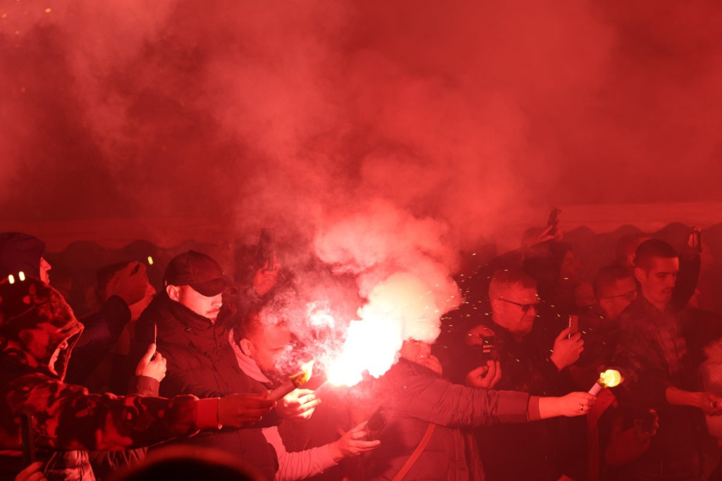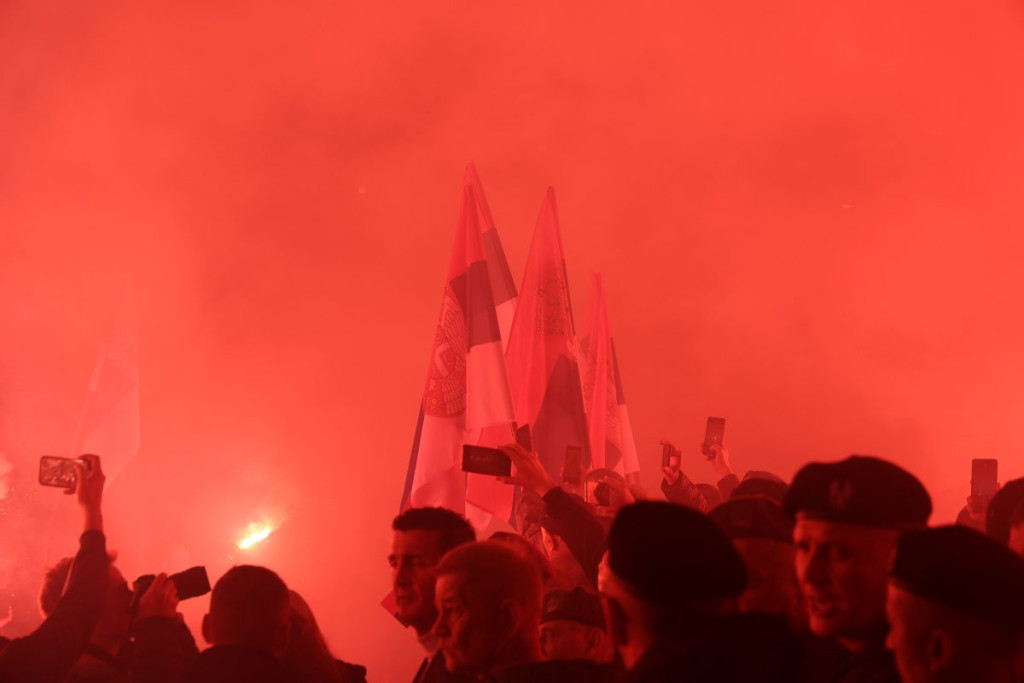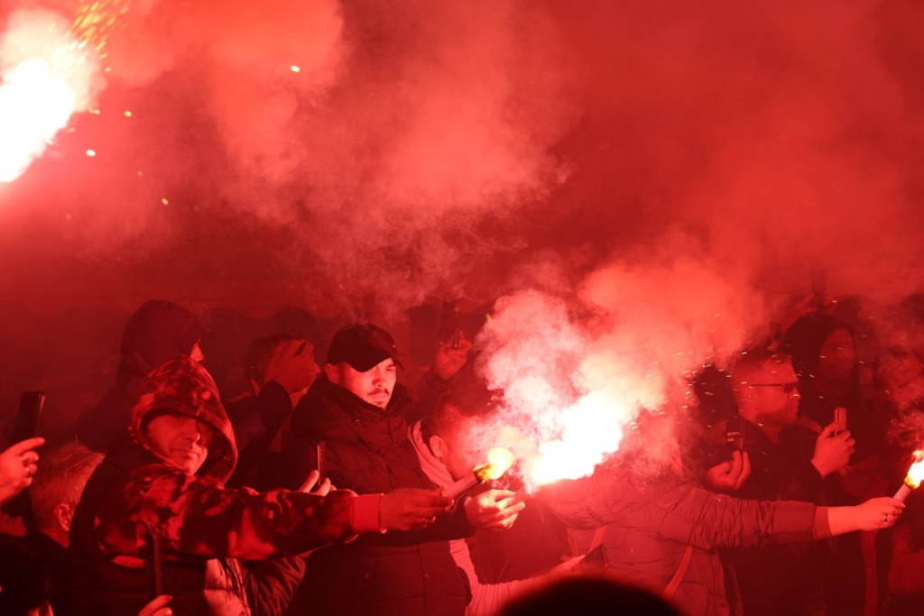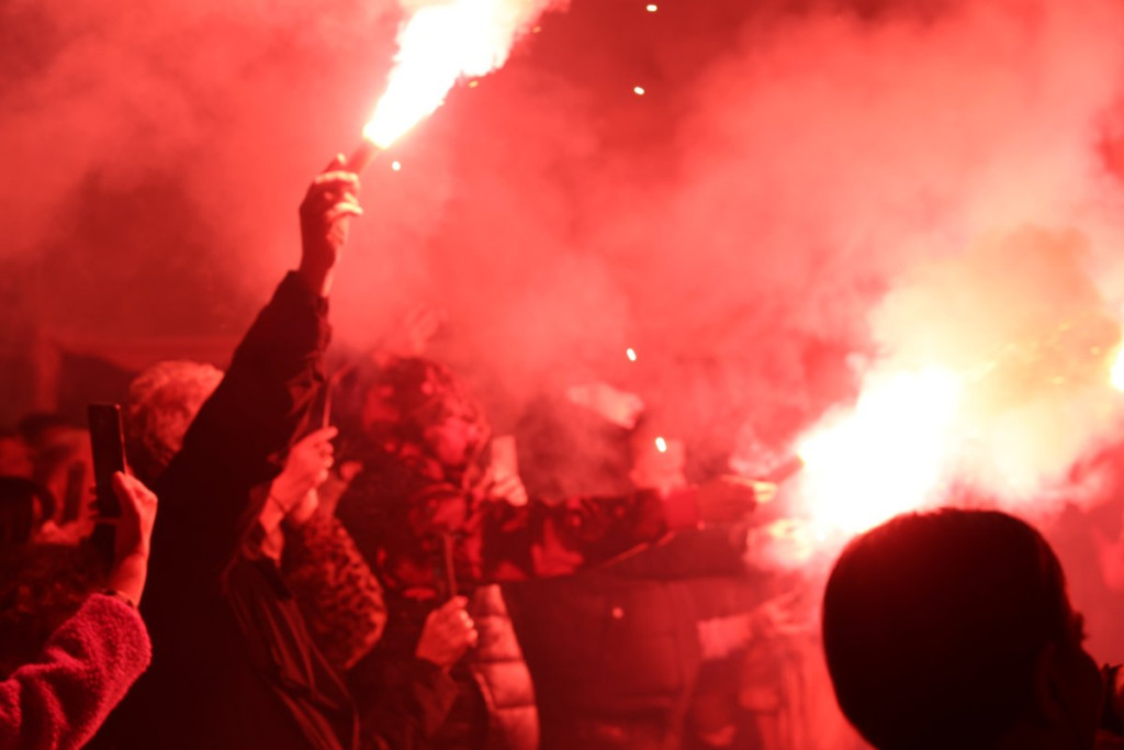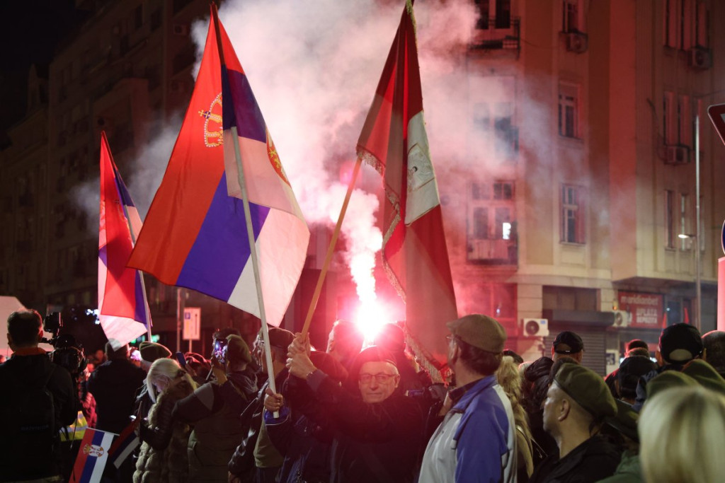 Na skupu ispred Narodne skupštine je danas oko 50.000 ljudi, a dok sijaju baklje i viore se srpske zastave, među ljudima odjekuju reči pesme, koja je za kratko vreme postala pravi hit među pristojnom Srbijom.