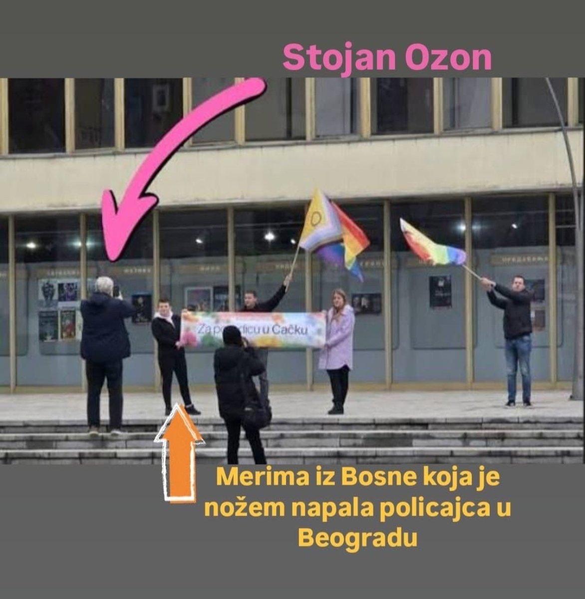 Međutim, ono što zaboravljaju jeste da je upravo Merima A. uslikana u Čačku 4. oktobra, na dan kada je u centru grada održana promocija LGBT sadržaja. Ispred Doma kulture, tada ju je dočekao Stojan Marković, opozicioni odbornik.