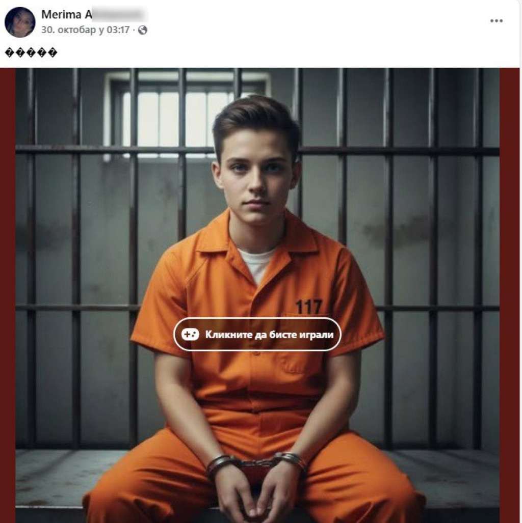 Ipak Merima A. je otvoreno, na svom profilu na društvenim mrežama, pljuvala po policiji, delila fotografije Dijane Hrke, ali i objavili svoju fotografiju urađenu u veštačkoj inteligenciji na kojoj je u zatvoru!?!