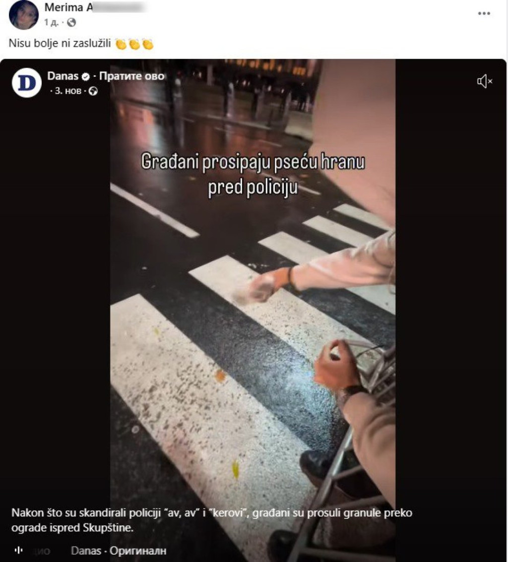 ''Nećete verovati, ali desila se čudnovata slučajnost. Naime, nakon toga što su studenti iz Novog Pazara prepešačili Srbiju ispod srpske zastave dešava se da sinoć Merima iz BiH napada policajca nožem, a u Srbiji je neprijavljeno od kraja septembra. Svaka čast režiseru Bokanu'', napisala je Bahilj na mreži Iks.