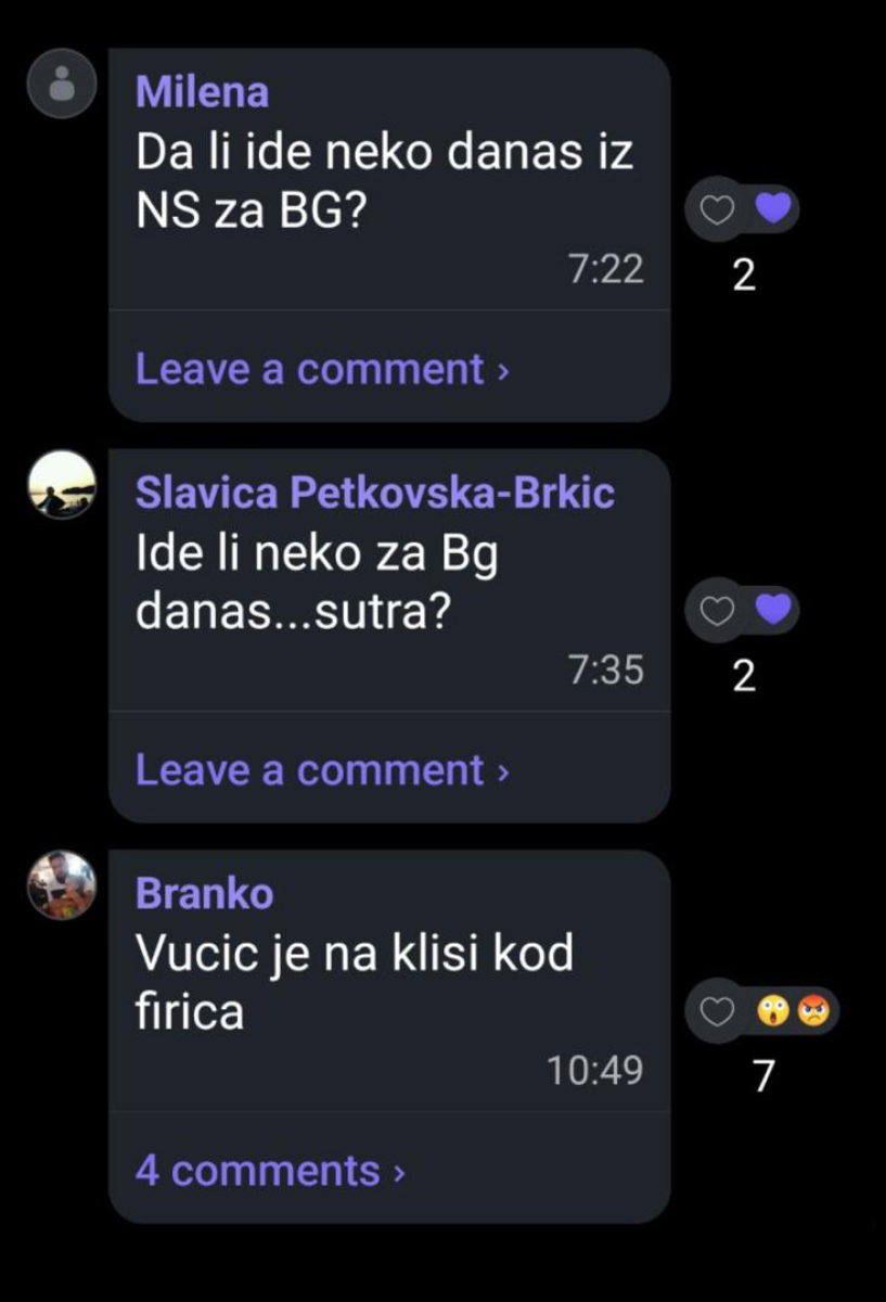- Da li ide neko danas iz NS za BG. Vučić je na Klisi kod Firića - piše u prepisci.