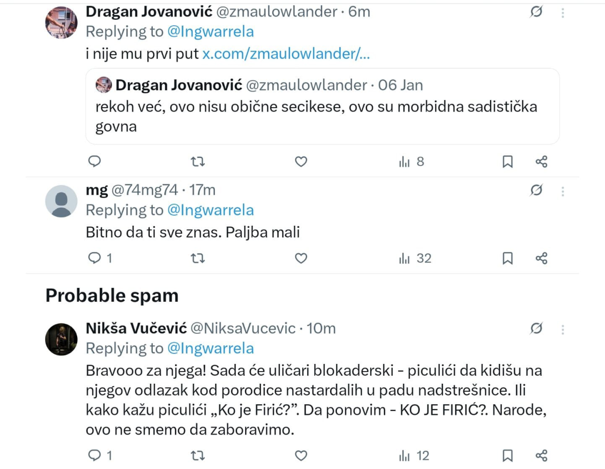 Da sve bude gore po blokadere, neki od njih čak i pitaju "ko je Firić", na osnovu čega je jasno da oni ne znaju ništa o porodici Firić, kao i da njihova takozvana borba nema nikakve veze sa žaljenjem žrtava stradalih u padu nadstrešnice, već je reč o rušenju Srbije i pokušaju da nasiljem dođu na vlast.