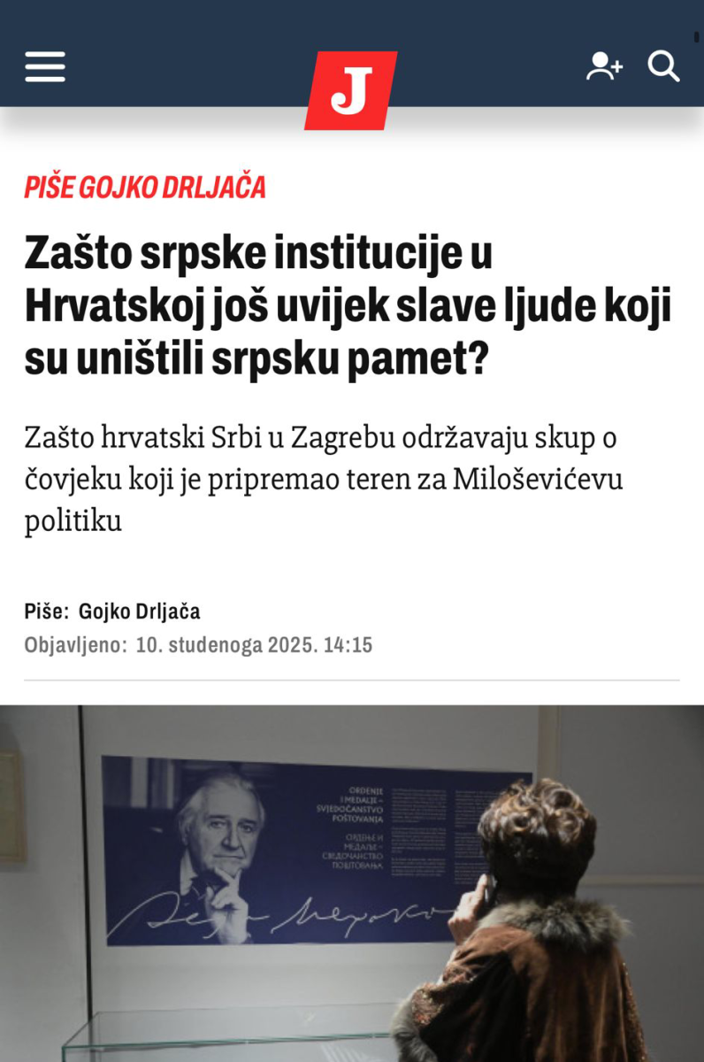 "Zašto srpske institucije u Hrvatskoj još uvijek slave ljude koji su uništili srpsku pamet?", glasi naslov članka koji potpisuje Gojko Drljača, a čija je glavna teza da su Srbi krivi čak i kad idu na izložbe.