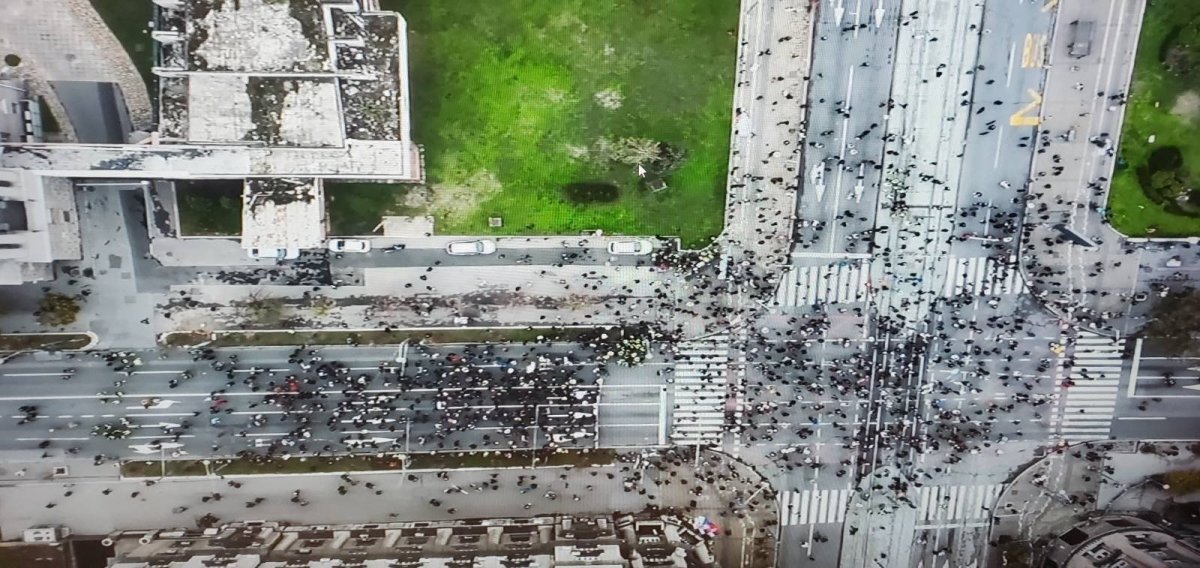 Prema zvaničnim procenama policije, na skupu se okupio 1.281 blokader. Pogledajte i sliku iz drona koja je nastala u piku njihovog protesta.