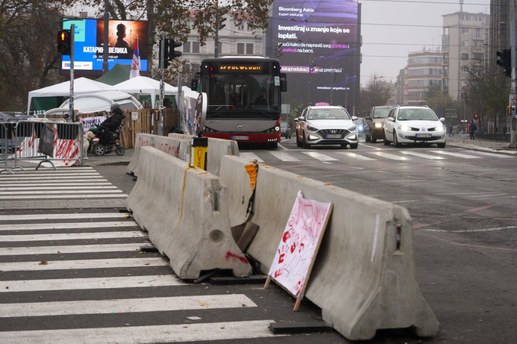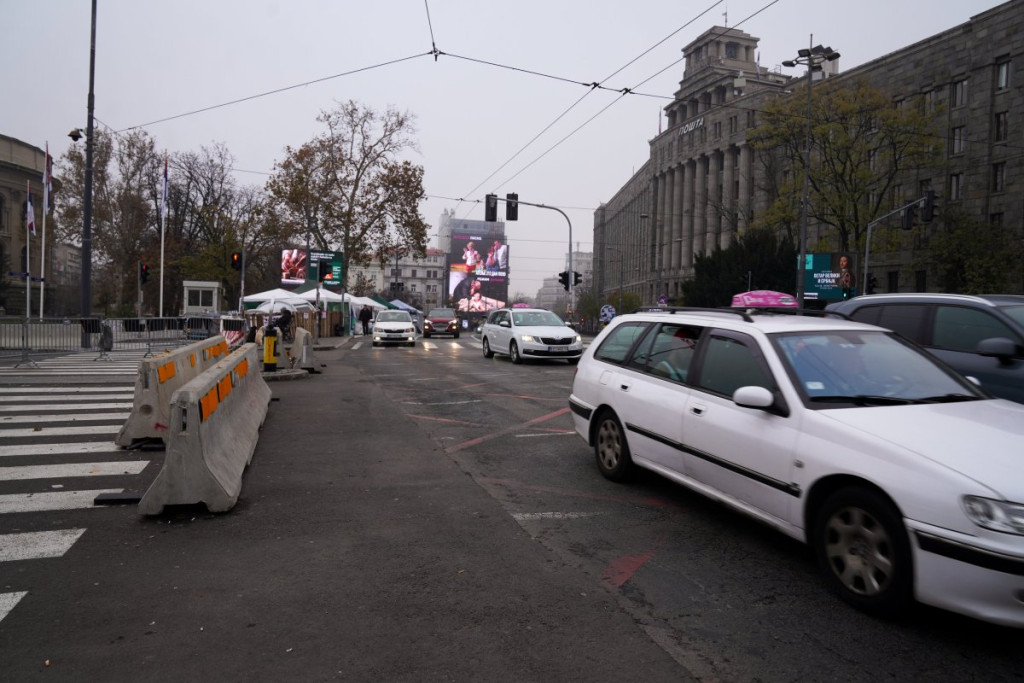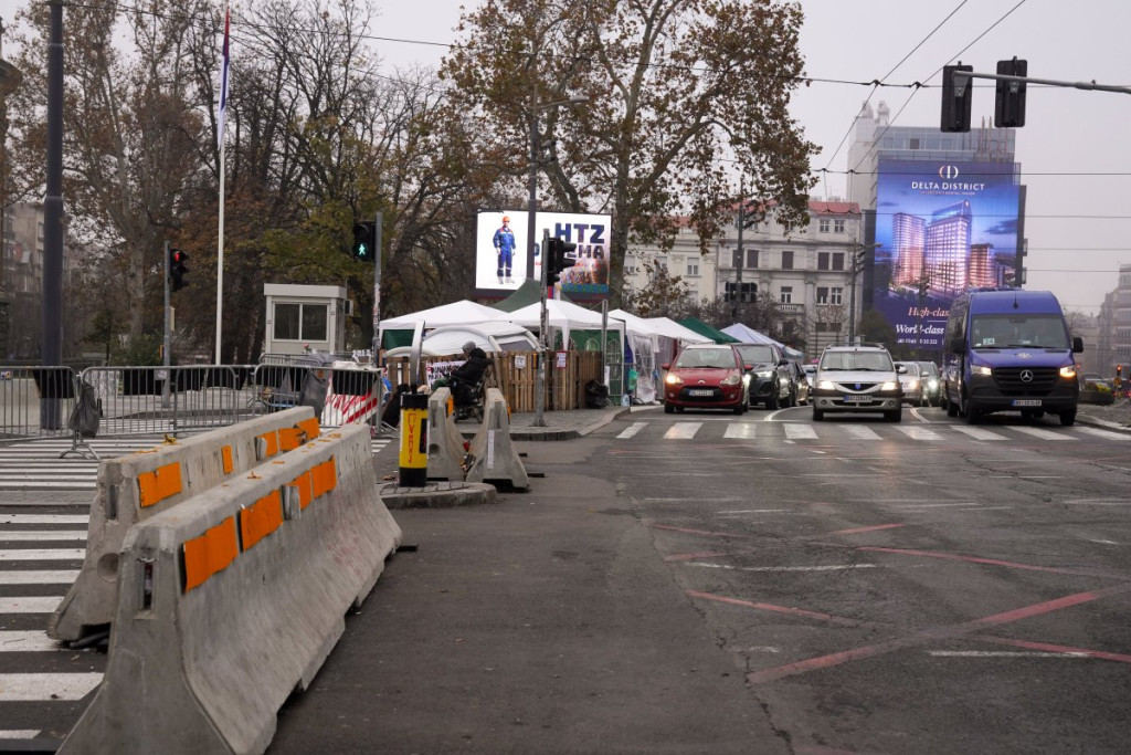 Ispred Doma Narodne skupštine nalazi se nekoliko policijskih službenika. Na raskrsnici Takovske i Bulevara kralja Aleksandra povremeno su se i prethodnih dana okupljale grupe blokadera koje su blokirale saobraćaj.