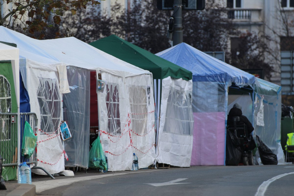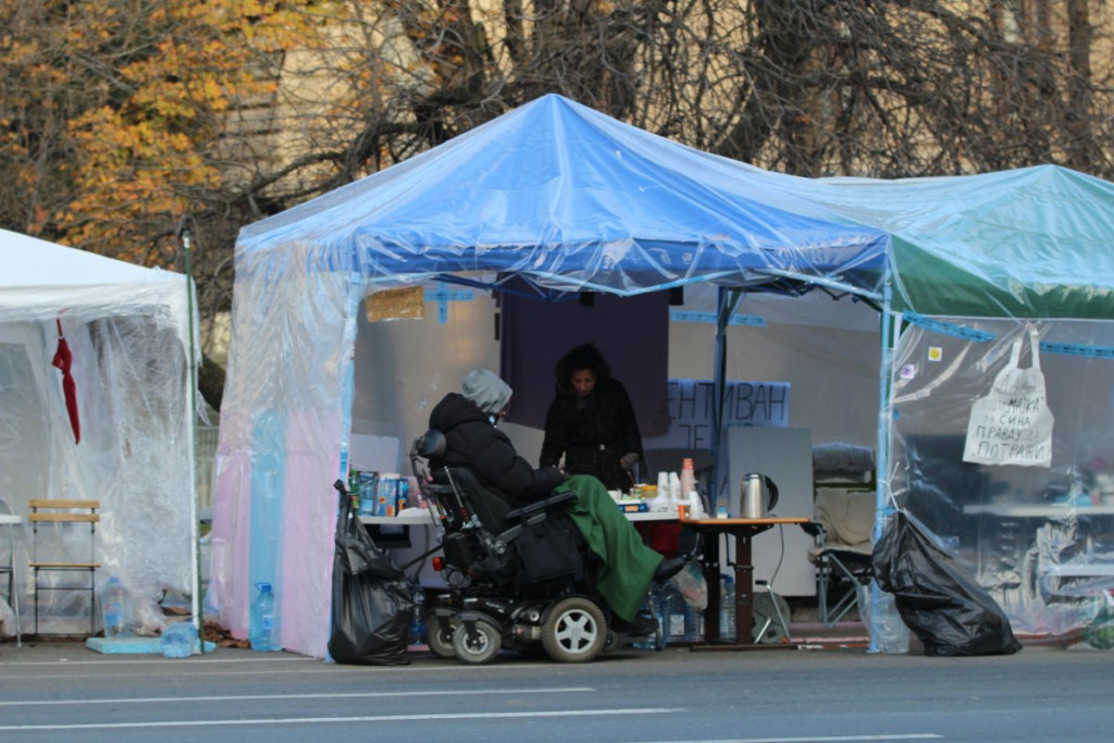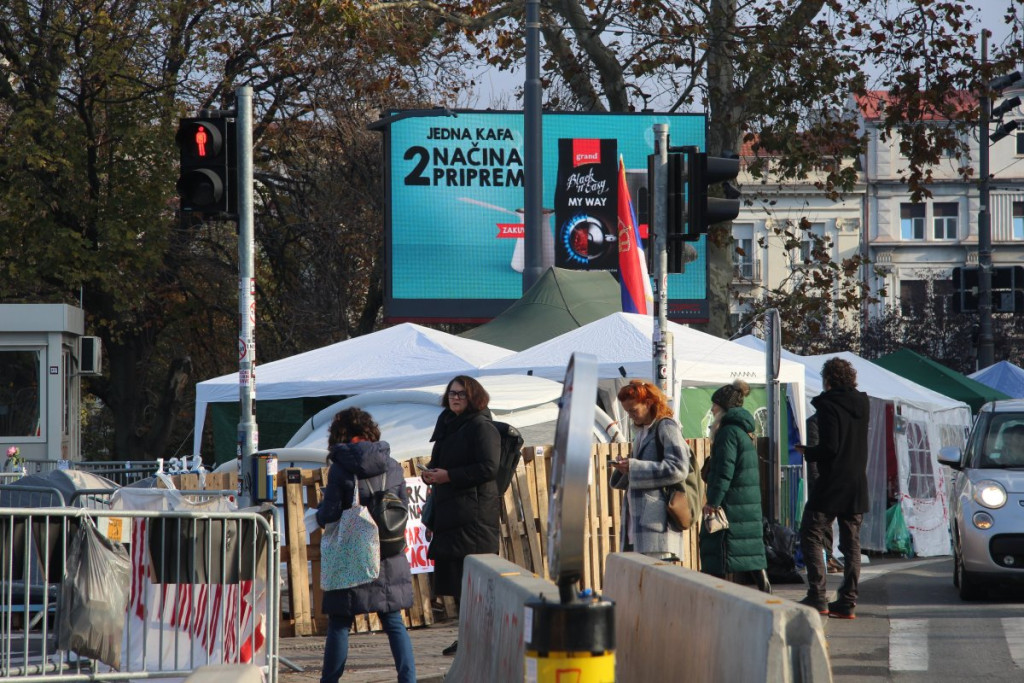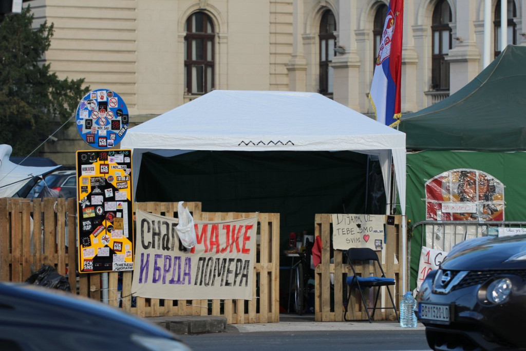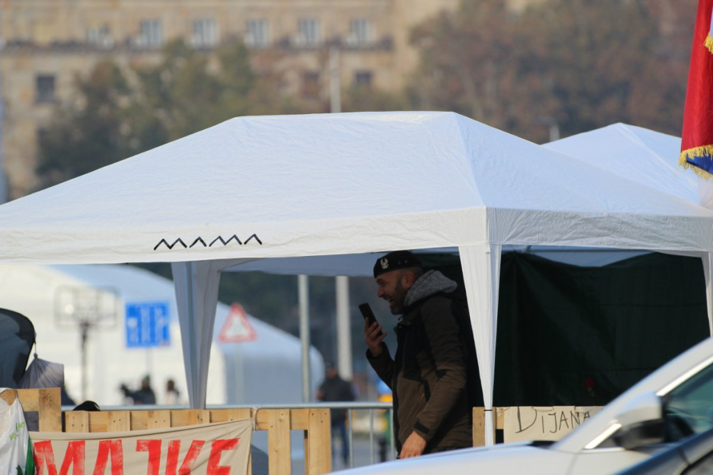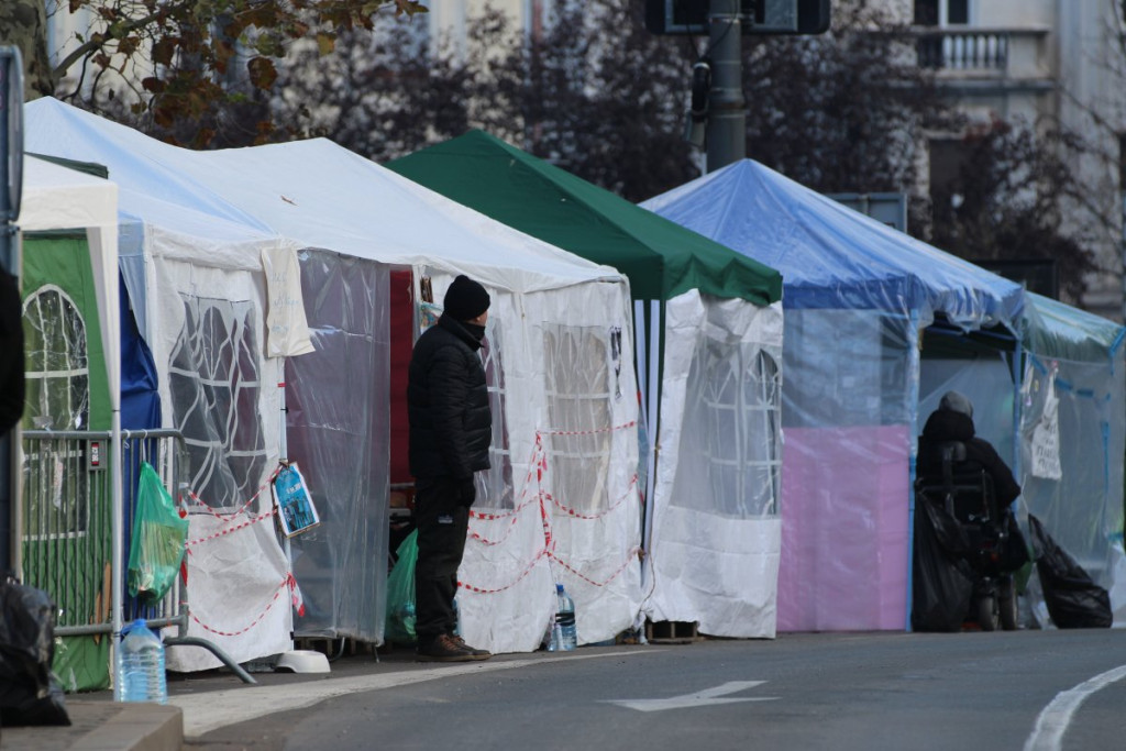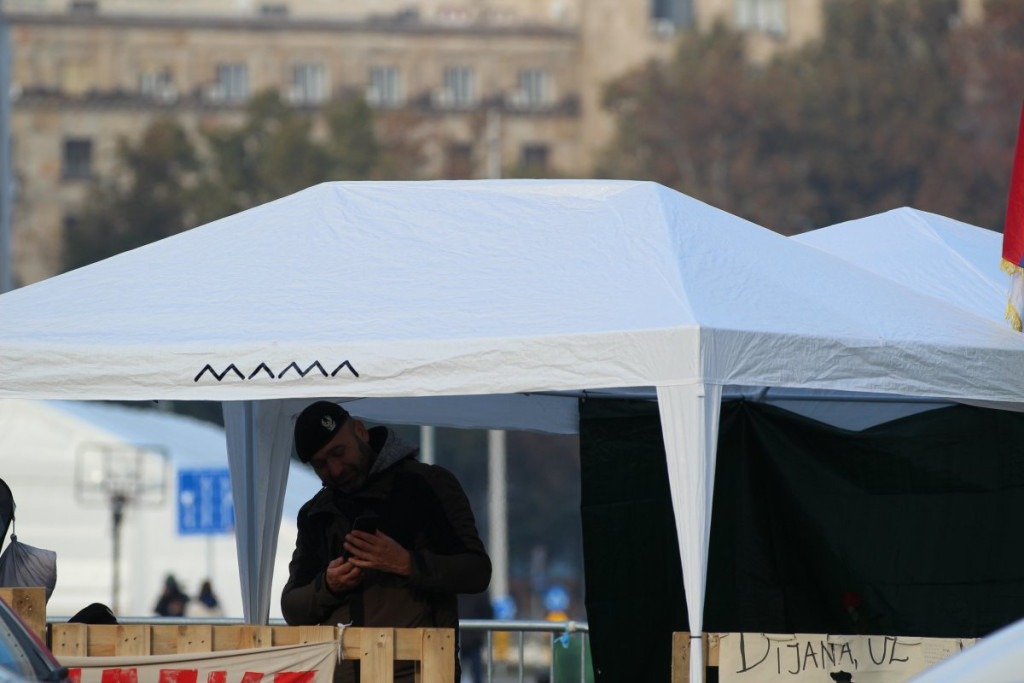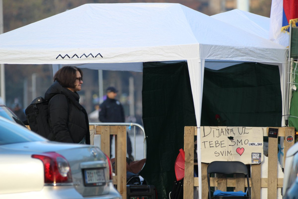 U blizini Doma Narodne skupštine, na raskrsnici Takovske i Bulevara kralja Aleksandra, nalazi se šator u kojem je Dijana Hrka, čiji je sin nastradao u padu nadstrešnice na Železničkoj stanici u Novom Sadu, a koja je nastavila štrajk glađu nakon što joj je sinoć ukazana medicinska pomoć u jednoj privatnoj klinici.