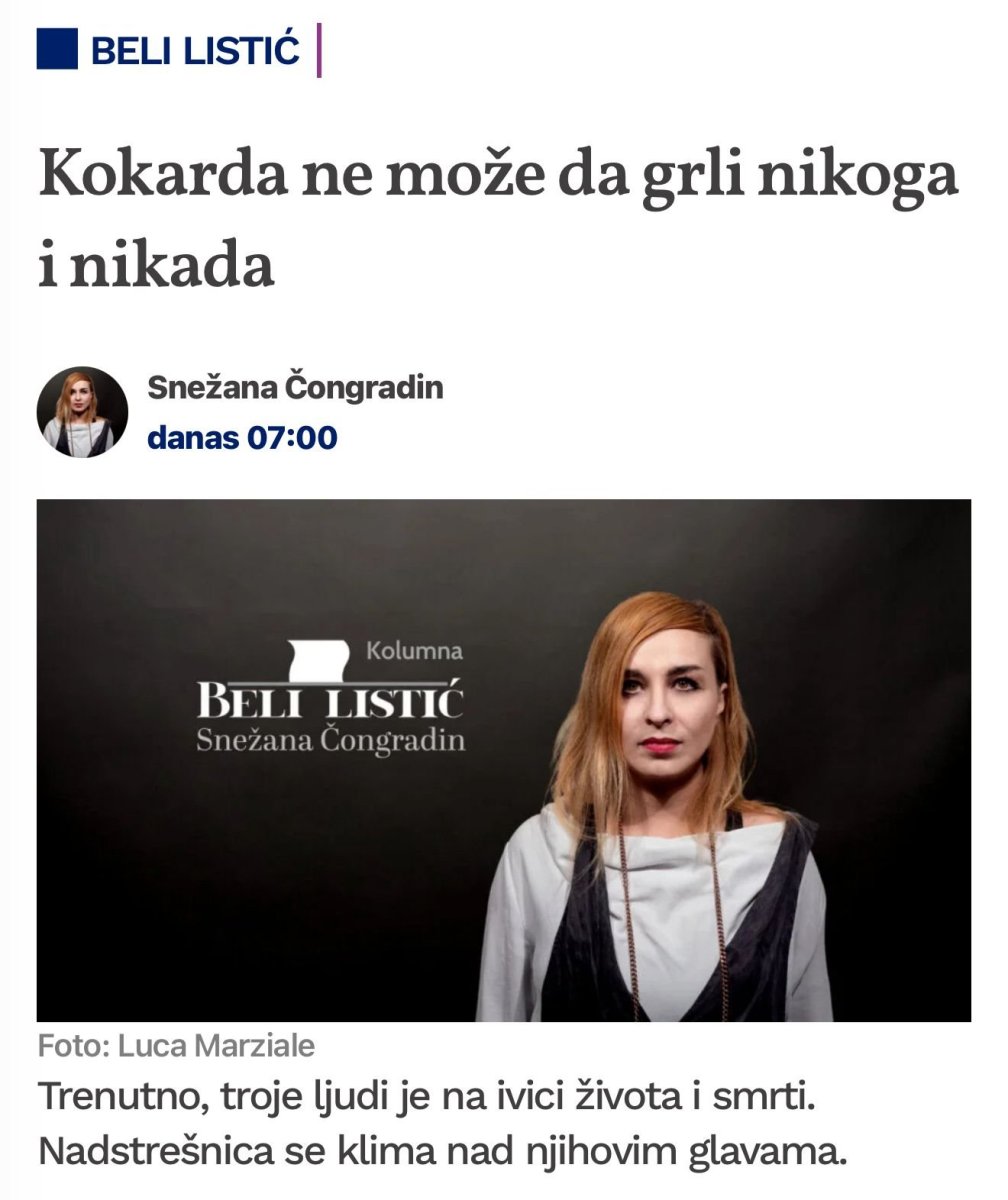 Поменута особа не само да није вредна помена већ није новинар .То је класичан пропагандиста а из авиона се види да јој је деда био комуниста .Није она проблем већ болесни власник медија где она пише .Замислите овакав текст у Хрватској или Словенији ?Аман Срби узмите се у памет у Београду вам седе људи који вам ломе кичму.Где то има? Није крива новинарета Чонградин ...