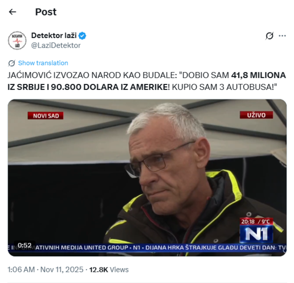On je firmu otvorio samo 13 dana nakon pada nadstrešnice na železničkoj stanici u Novom Sadu i pogibije 16 osoba, što su blokaderi iskoristili kao izgovor za organizovani napad na ustavni poredak naše zemlje, a Jaćimović, kako stvari stoje, za lično bogaćenje.