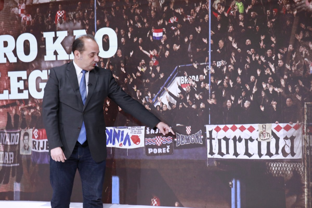 U jednom trenutku, Raković je morao da ustane sa svog mesta kako bi na grafici pojasnio kako izgleda ustaška zastava kojom se ponose ustaše iz regiona.