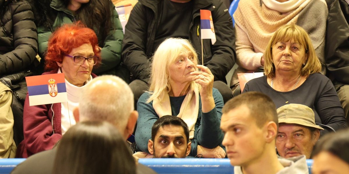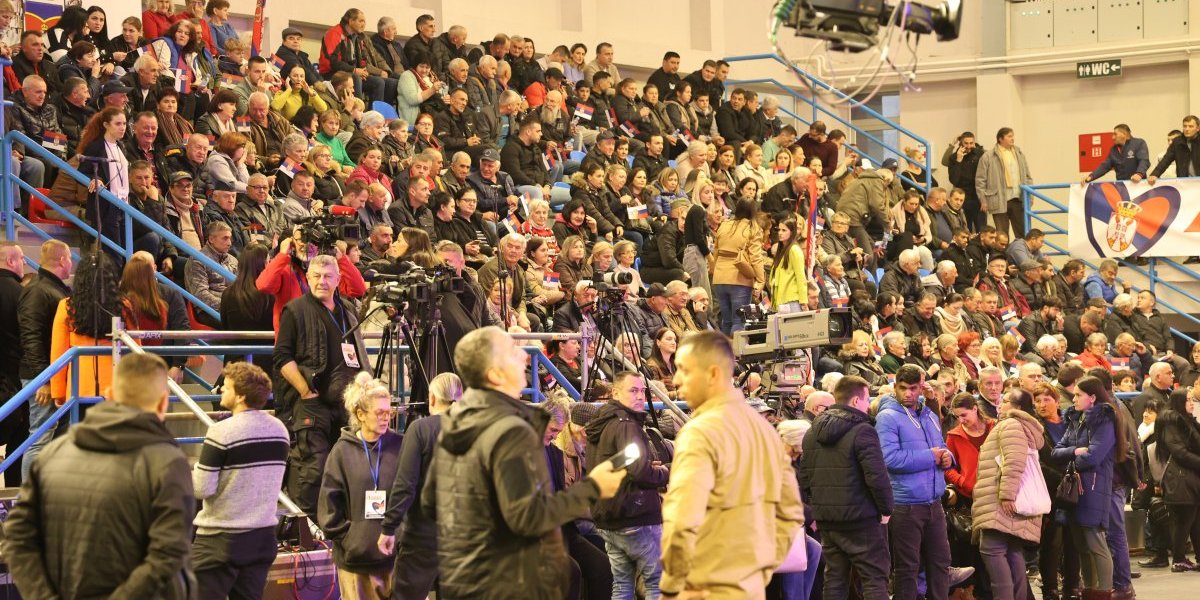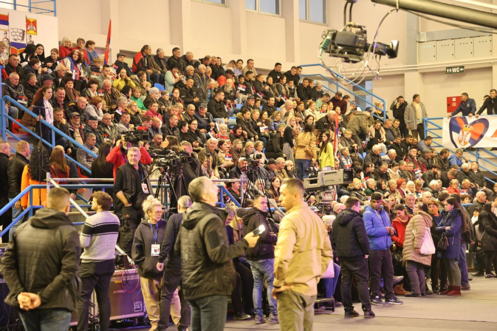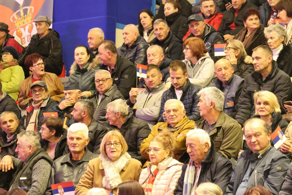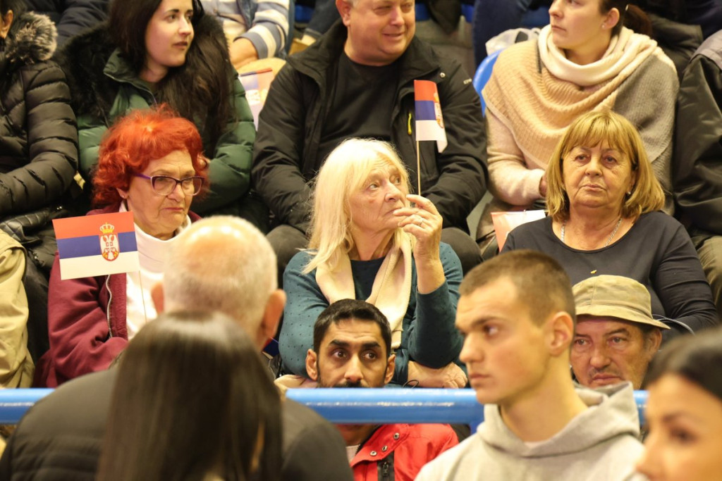 U jednom trenutku je salom, u kojoj će se predsednik obratiti građanima, odjekivalo: "Aco, Srbine". Pogledajte kako je izgledala atmosfera pred njegov dolazak.