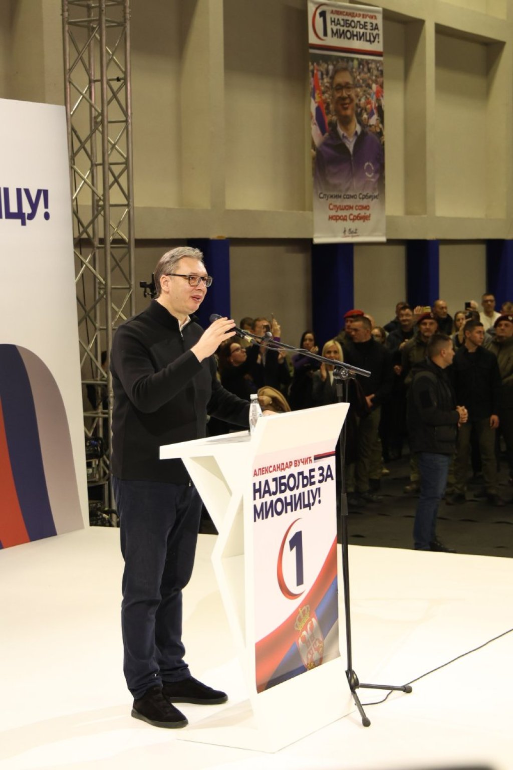 - Ja hoću zajedno sa vama da nastavimo da gradimo Srbiju, da se borimo za našu zemlju, da se borimo za svakog našeg čoveka, da pokažemo pažnju prema svakom našem čoveku i to hoću da radimo zajedno. Nikad nije lako čuvati nezavisnost Srbije i boriti se za svoju zemlju, a ne podilaziti drugima i ne raditi za tuđe interese, već raditi za interese svog naroda. Srbiju volim više od svega i jedino mi je Srbija važna. A ovi drugi, poštovanje svima, ali ne vredi, u mom srcu ima mesta samo za Srbiju - rekao je predsednik Vučić i dodao: