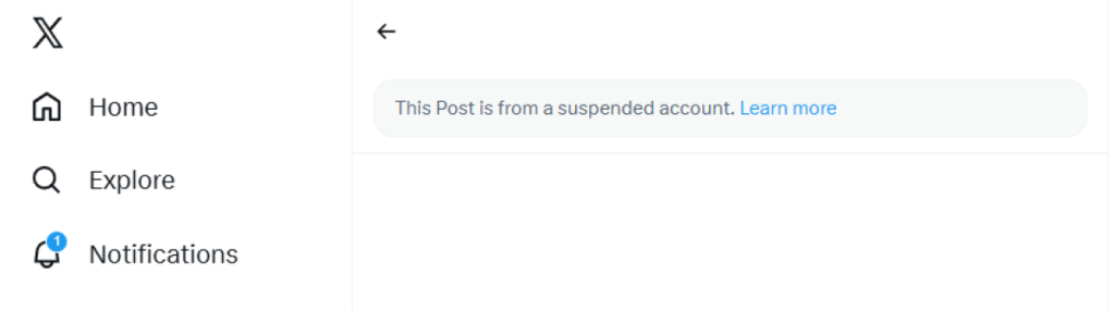 Tako sada u pretrazi na Iksu nije moguće pronaći profil Branka Babića, koji se na toj mreži predstavljao kao Čovek iz Ratkova, dok, ukoliko se pokuša pristup nekoj od ranijih njegovih objava izlazi sledeće obaveštenje: