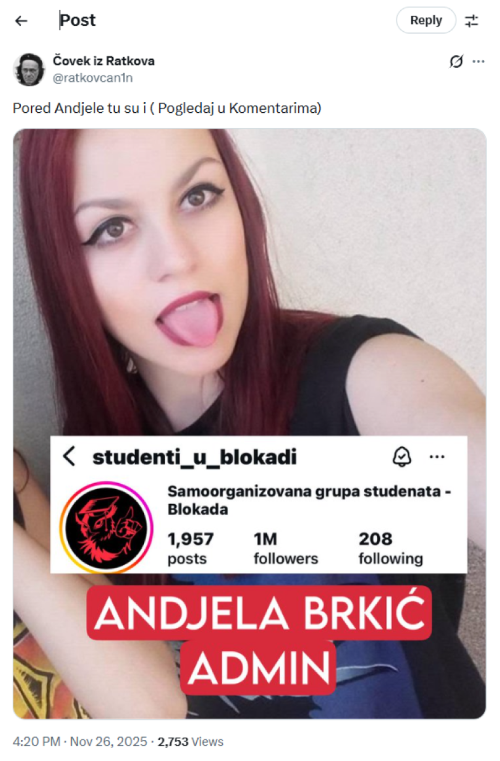 Međutim, kada je objavio imena 3 blokaderke koje vode profil "Studenti u blokadi" - onaj koji se najviše koristio za mobilisanje nasilnika za rušenje Srbije, ali i širenje poziva da se naša zemlja zaustavi, a nastava na svim fakultetima i u školama stopira, suspendovan mu je profil.