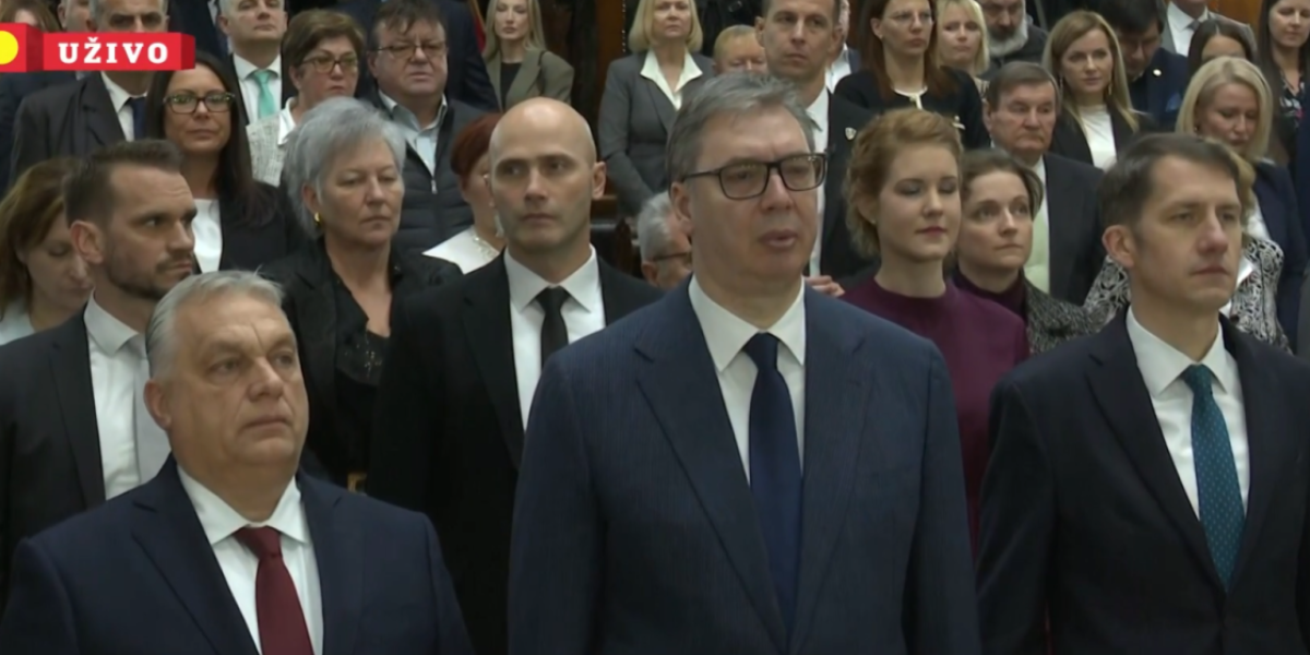 Predsednik Srbije Aleksandar Vučić i premijer Mađarske Viktor Orban dočekani su aplauzom pošto su ušli u salu.