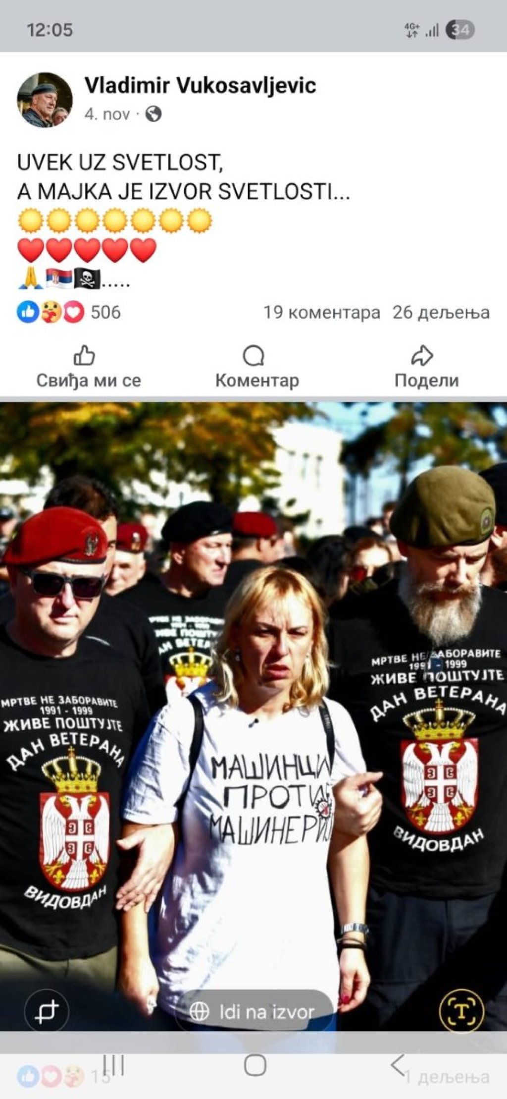 OSNOVNO PITANJE KO SU OVE SILEDZIJE KOJE SU OKO NJE? DRUGO CEGA SU ONI VETERANI? TRI POSLATI VOJNU POLICIJU I OBICNU DA SE UTVRDI CEGA SU ONI VETERANI I ZASTO NOSE KAPE VOJSKE SRBIJE ,KAD NISU VOJSKA SRPSKA? ONDA CEMO DA IDEMO DALJE.GOVEDA POZATVARATI MOMENTALNO.
