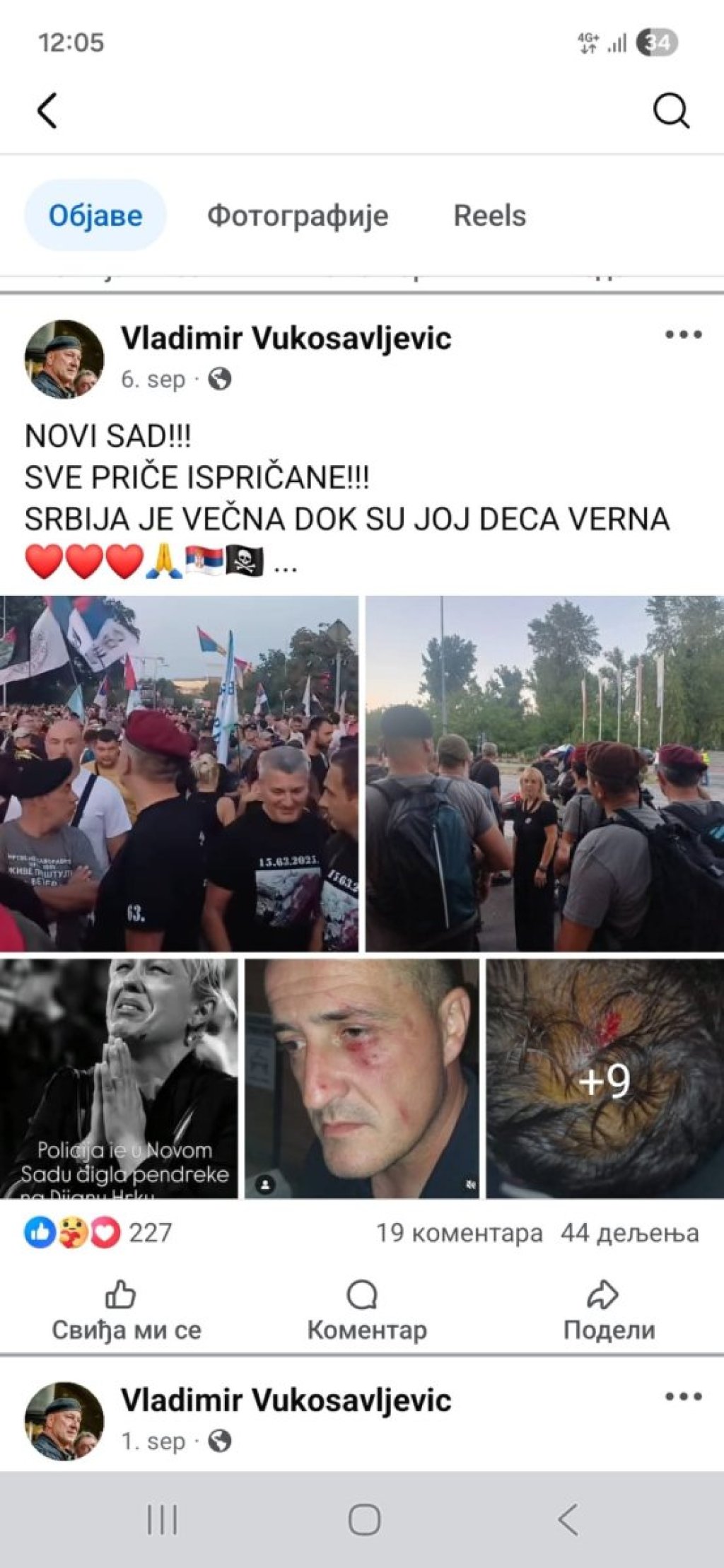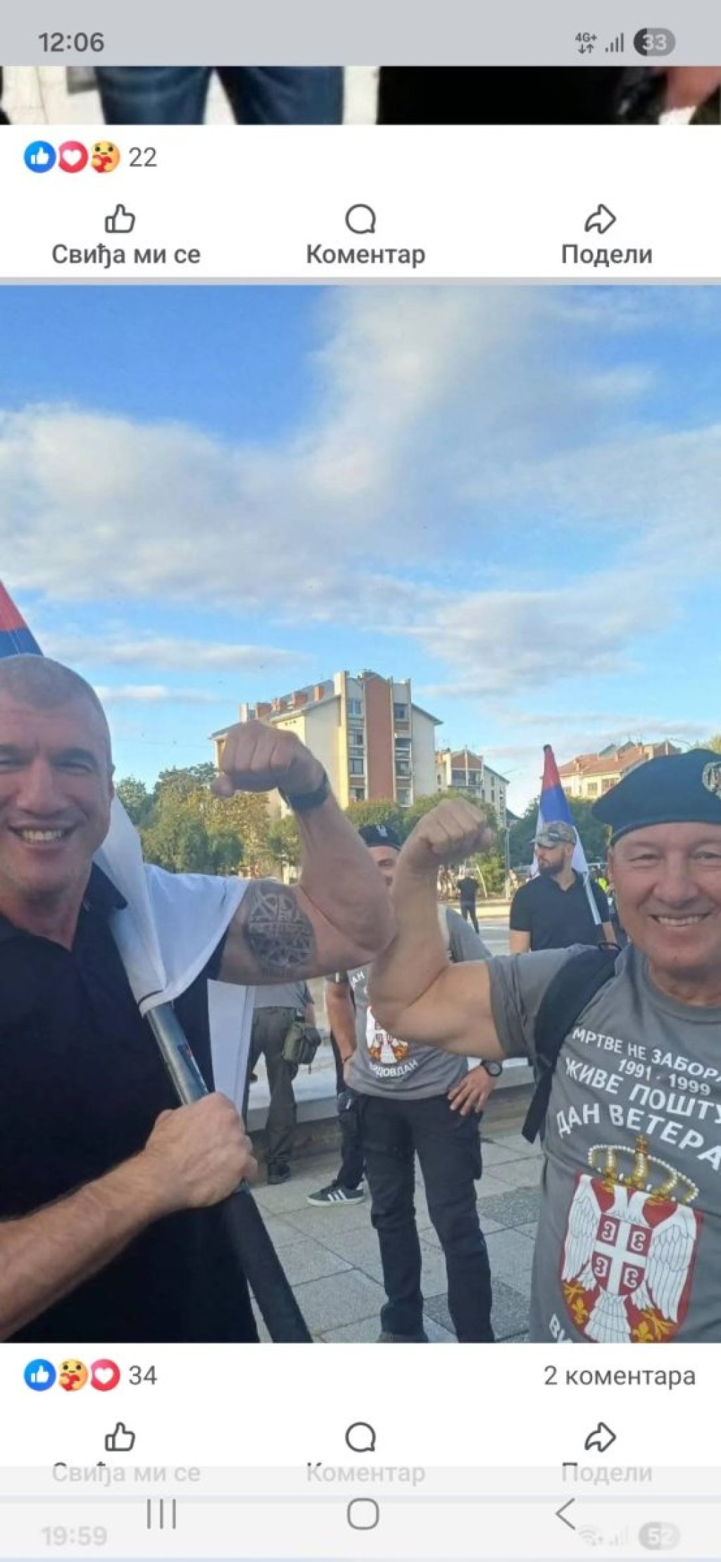Blokader se po društvenim mrežama hvali fotografijama pištolja sa kojim pozira, predsednika Vučića i SNS naziva ''nacističkim ološem koji treba očistiti'', a zatim izigrava ''veterana'' očigledno zaboravljajući šta mu je žena svojevremeno radila.