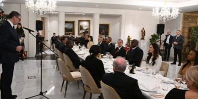 Predsednik Republike Srbije Aleksandar Vučić ugostio je sa suprugom Tamarom na večeri predsednika Demokratske Republike Kongo Feliksa Antoana Čisekedija Čilombu sa suprugom Deniz Njakeru Čisekedi i delegacijom.