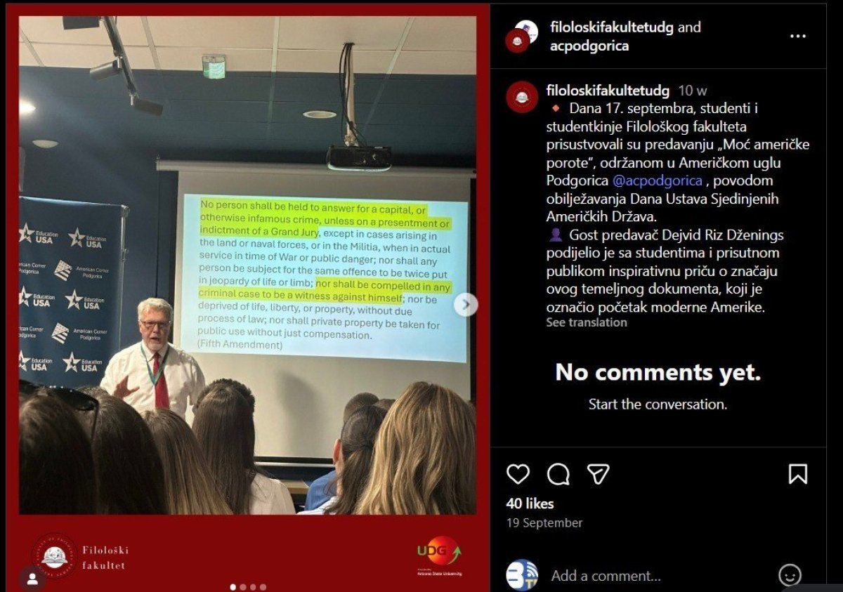Ali bio je… I ne samo što je bio, nego je svoju poziciju gostujućeg tužioca na Balkanu i zadržao. Nedavno je Dženings držao obuku na jednom podgoričkom fakultetu, stavljajući do znanja da demokratska duboka država neće tek tako otići sa ovih prostora. A možda ni iz života nekih žena iz tužilačkog sistema.