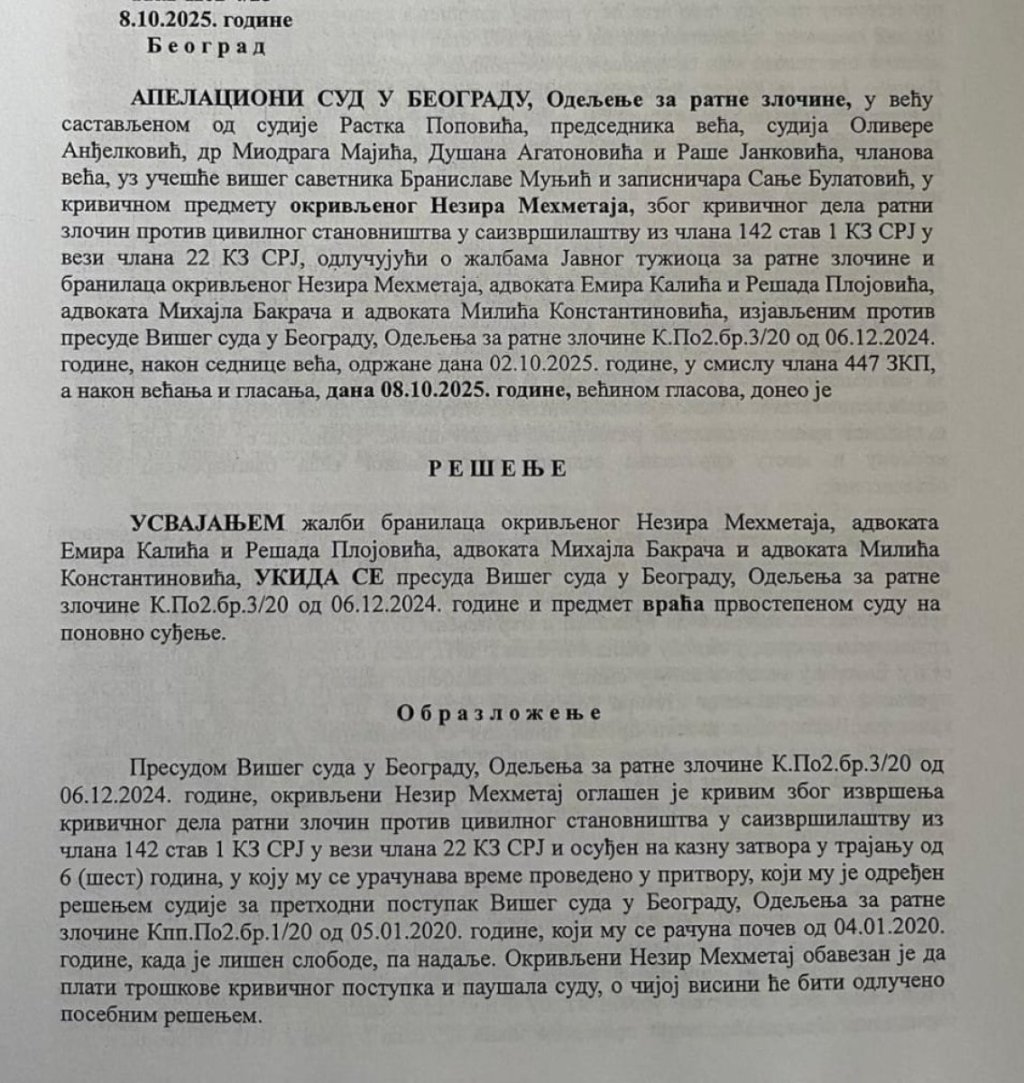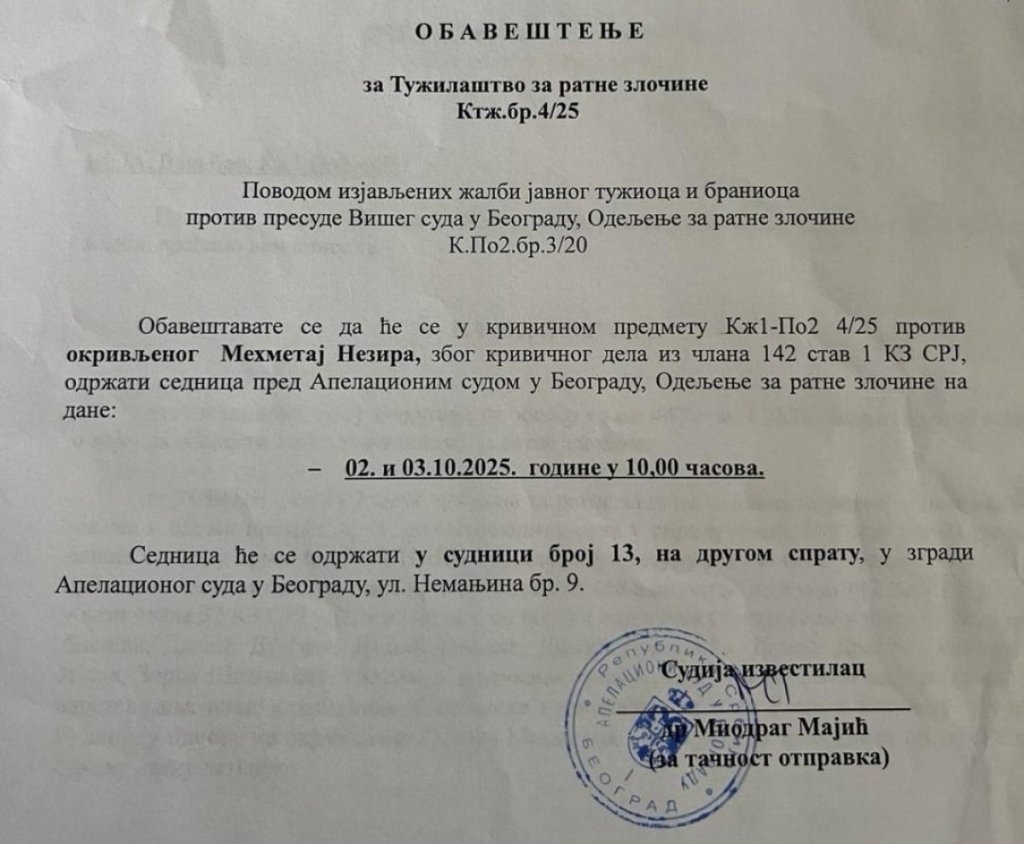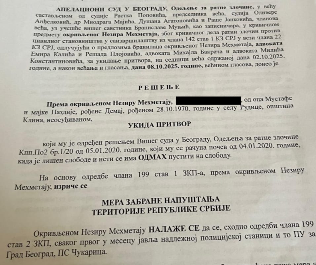 Prema našim informacijama, koju su potkrepljena dokumentima, sudija Majić jedan je od članova sudskog veća koji je osuđenog ratnog zločinca Nezira Mehmetaja, koji je u pritvoru godinama zbog ubistava, pljački, paljenja kuća, maltretiranja i zlostavljanja Srba, koje je praktično pustilo terorirstu da pobegne na Kosovo i Metohiju.