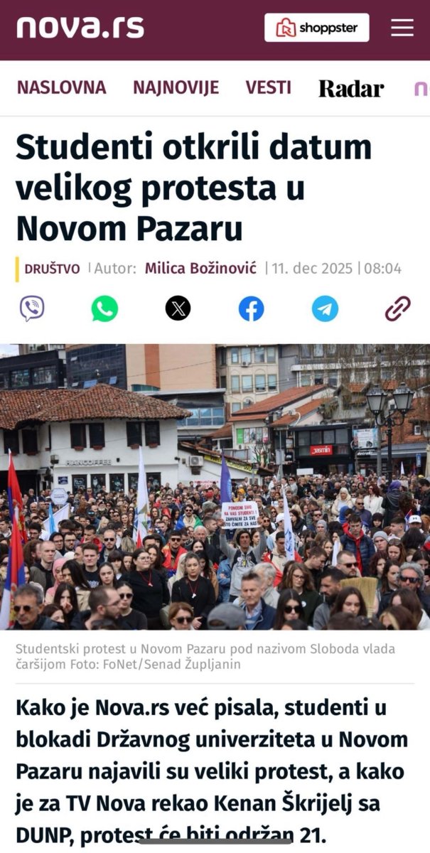 Novi haos u režiji blokadera sprema se krajem meseca. Blokadersko glasilo "Nova" jedva je dočekala da objavi vest o tome, pa su poručili: "Studenti otkrili datum velikog protesta u Novom Pazaru".
