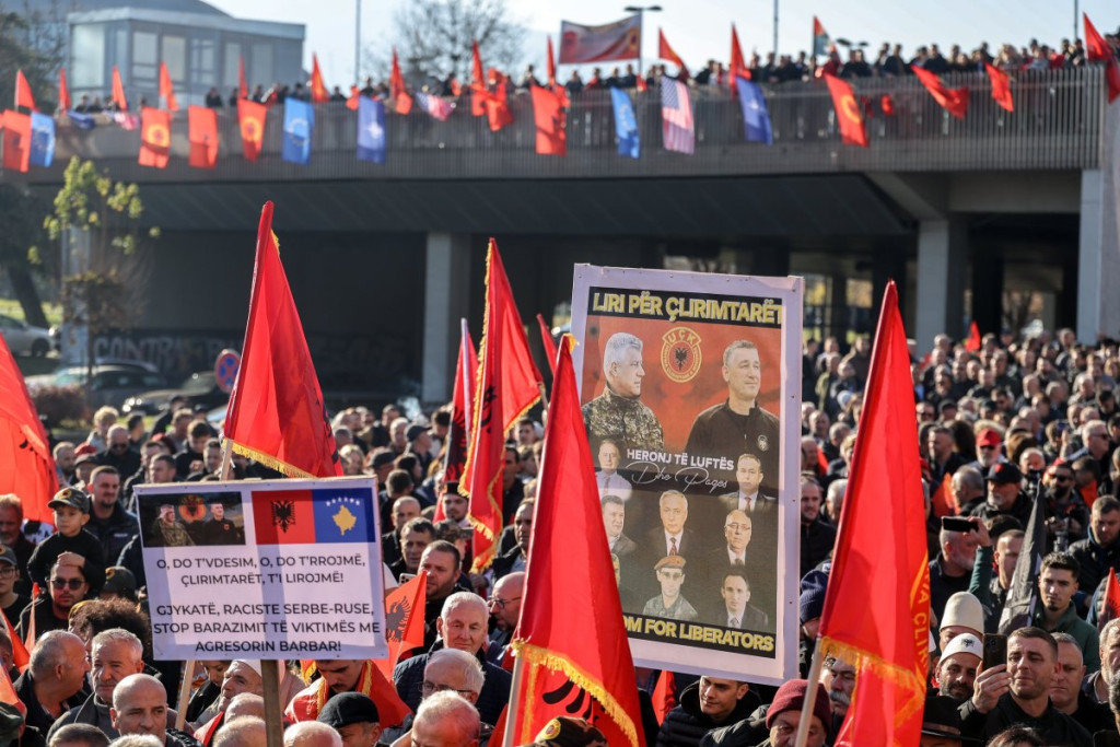 Na protestu su bile istaknute albanske zastave i zastave bivše OVK, kao i zastave SAD i NATO.