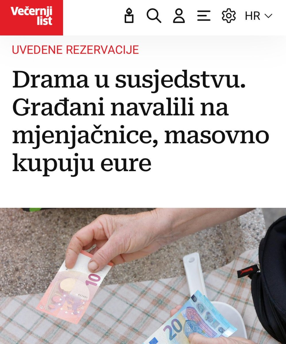 Hrvatski portal "Večernji list" preneo je lažnu vest da je u Srbiji pomama i panika za kupovinom eura u menjačnicama zbog energetske situacije sa NIS-om i navodnih mogućih proširenja američkih sankcija.