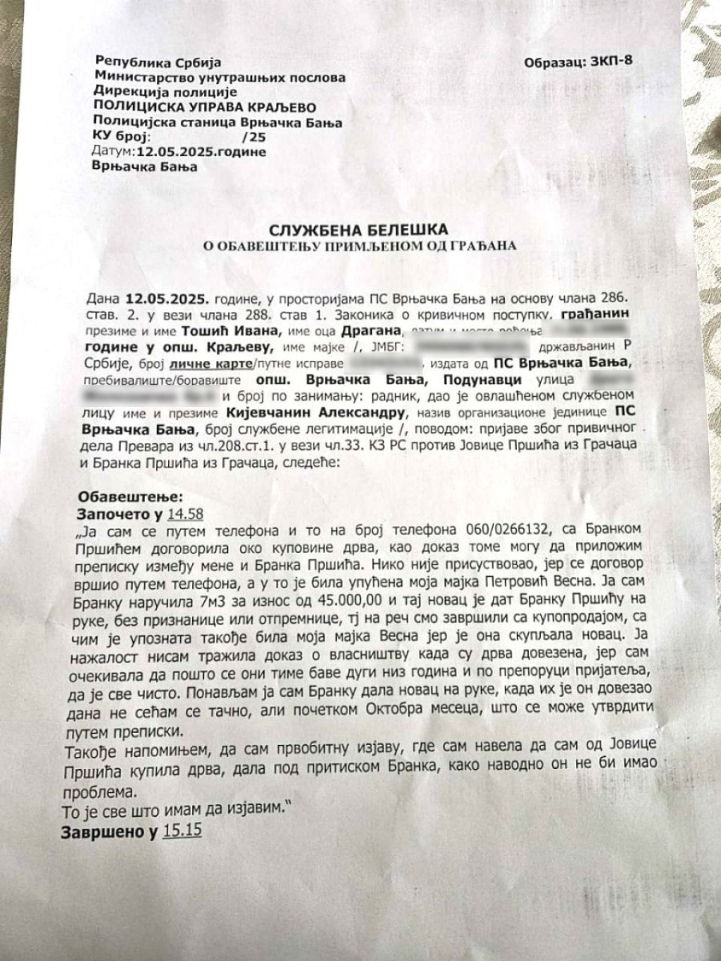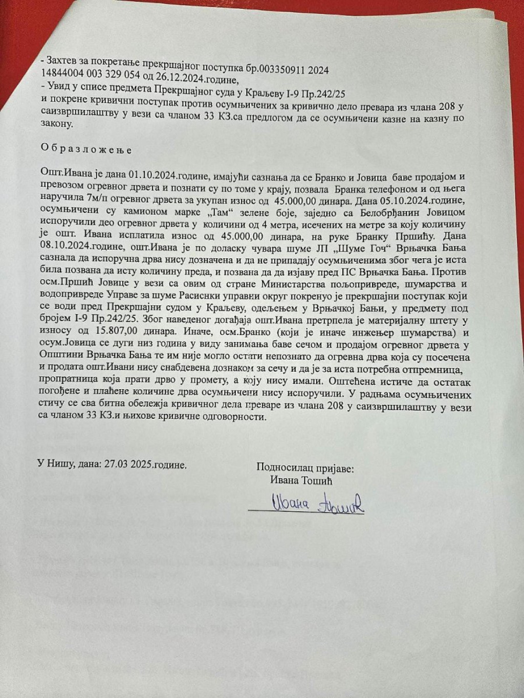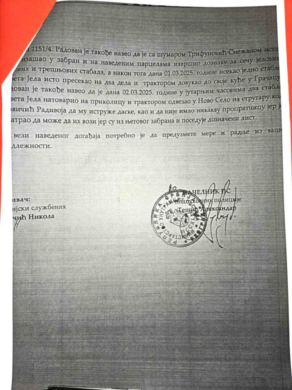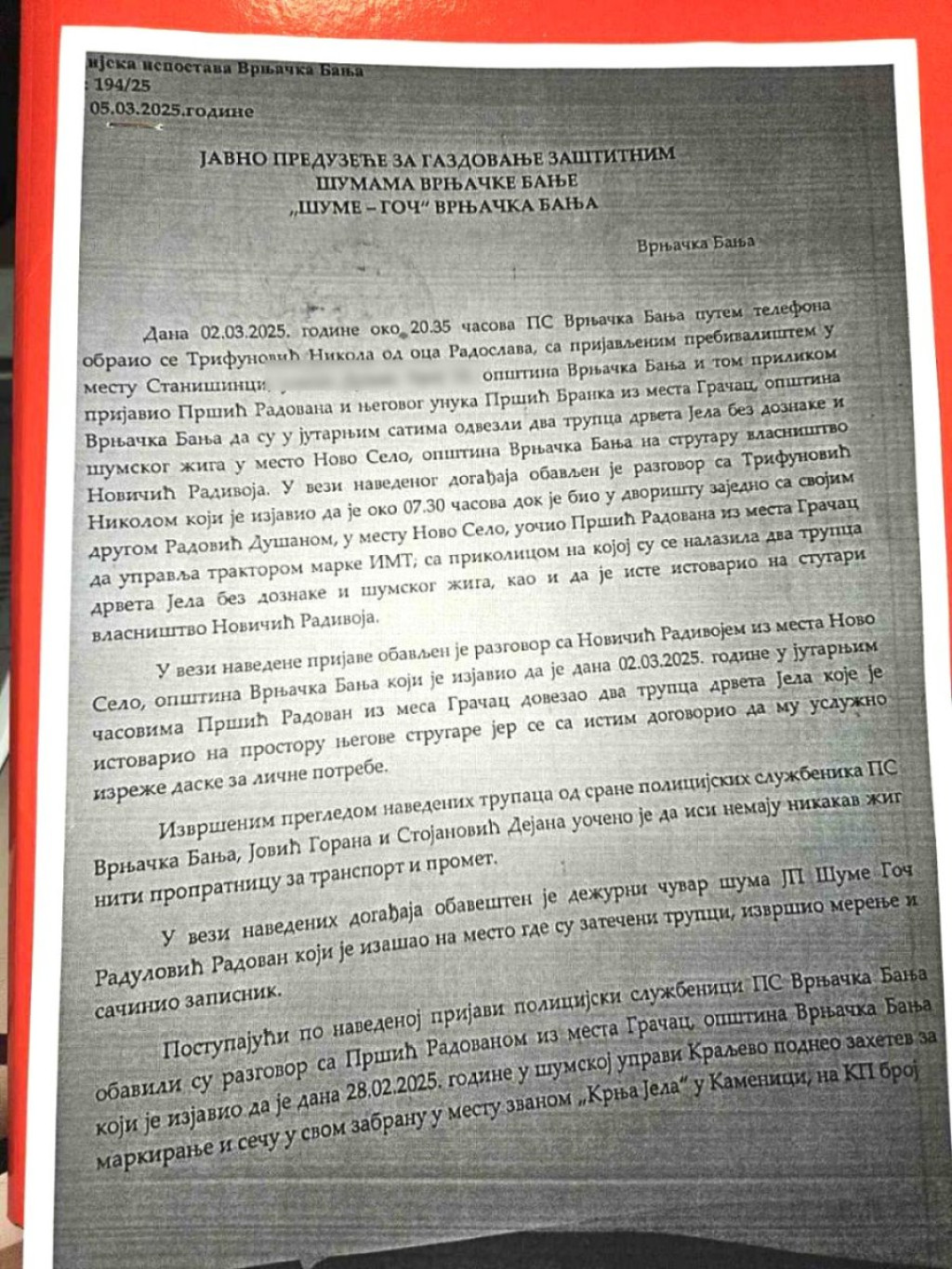 Kako naš izvor otkriva, ogroman je broj krivičnih prijava protiv porodice Pršić zbog krađa drva, tradicija koja se u toj porodici prenosi sa kolena na koleno.
