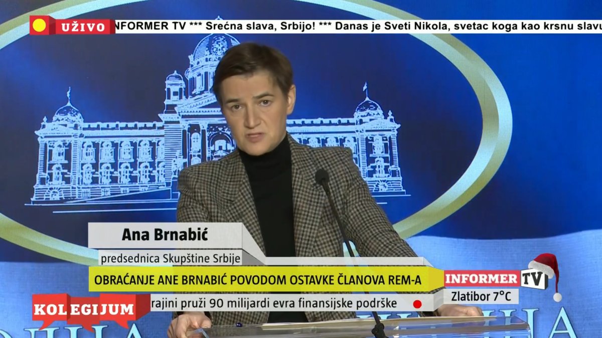 Predsednica Skupštine Srbije Ana Brnabić obratila se danas javnosti Srbije nakon što su 4 člana Regulatornog tela za elektronske medije (REM) podneli ostavke.