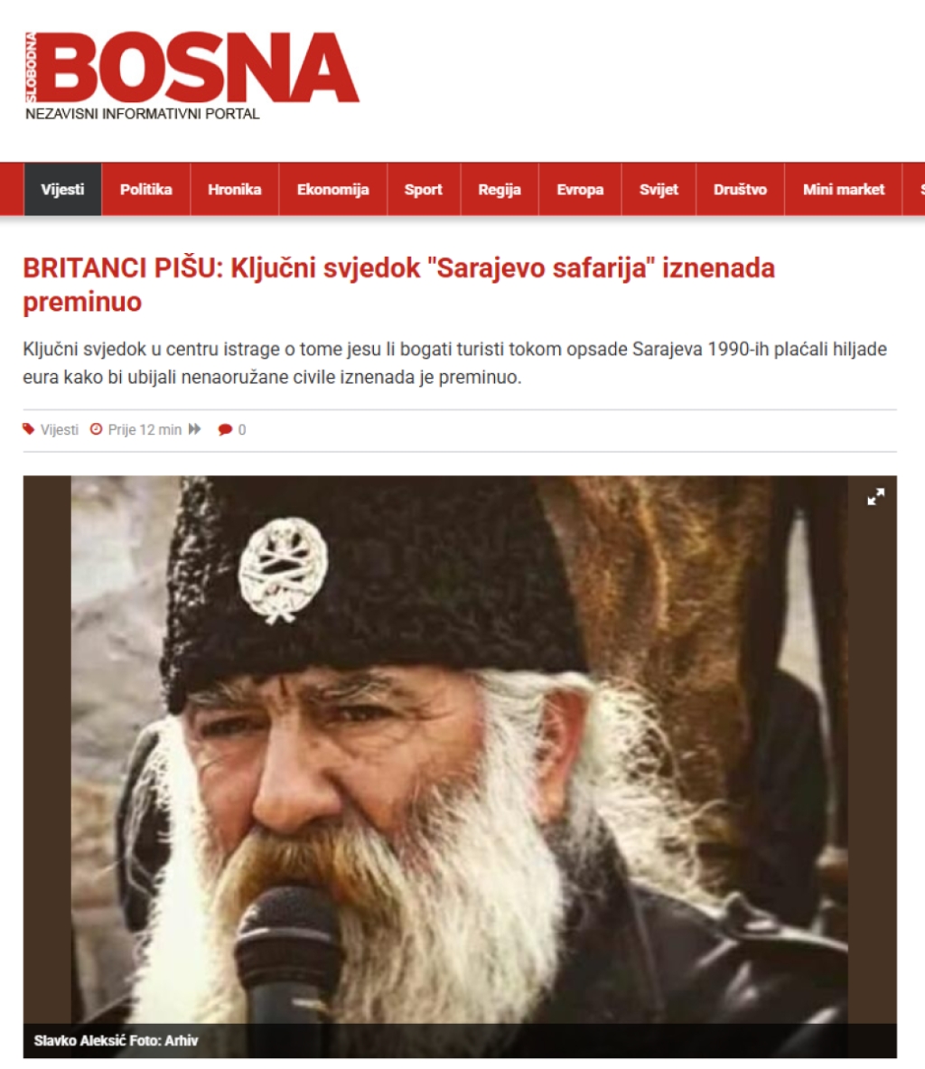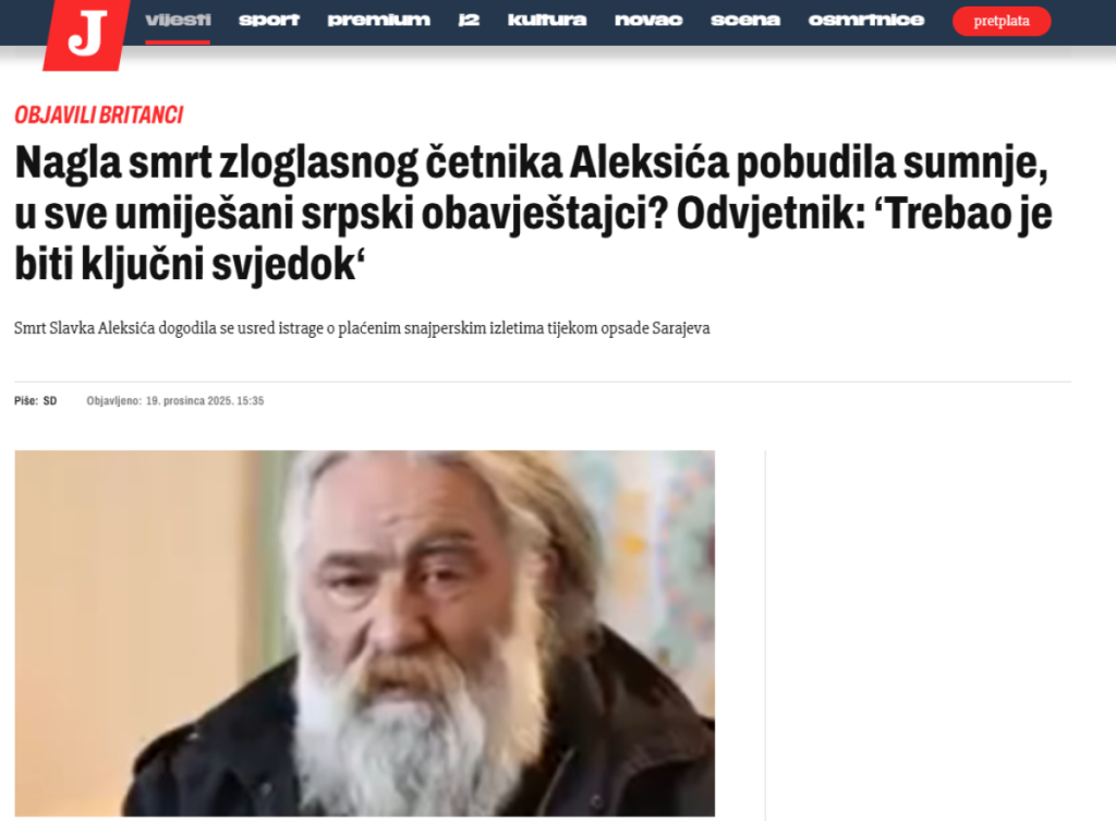 Tako je Jutarnji list objavio članak pod naslovom "Nagla smrt zloglasnog četnika Aleksića pobudila sumnje, u sve umešani srpski obaveštajci? Odvjetnik: Trebalo je da bude ključni svedok", a o ovoj temi piše i džihadistička Slobodna bosna, kao i Slobodna Dalmacija.