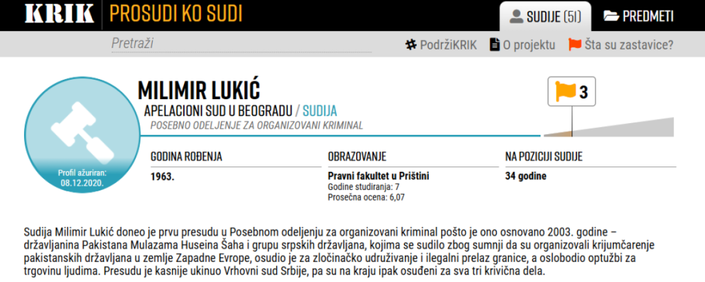 Kako se navodi na portalu KRIK, Lukić je sudija 34 godine, a od 2011. godine je u Posebnom odeljenju za kriminal u Apelacionom sudu.