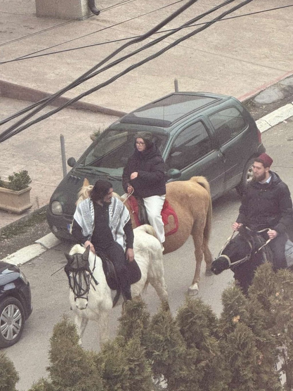 Sara Hamidović, Kenan Škrijelj (sa fesom na glavi) i Izet Demirović, svi studenti blokaderi, došli su na konjima na blokaderski protest.