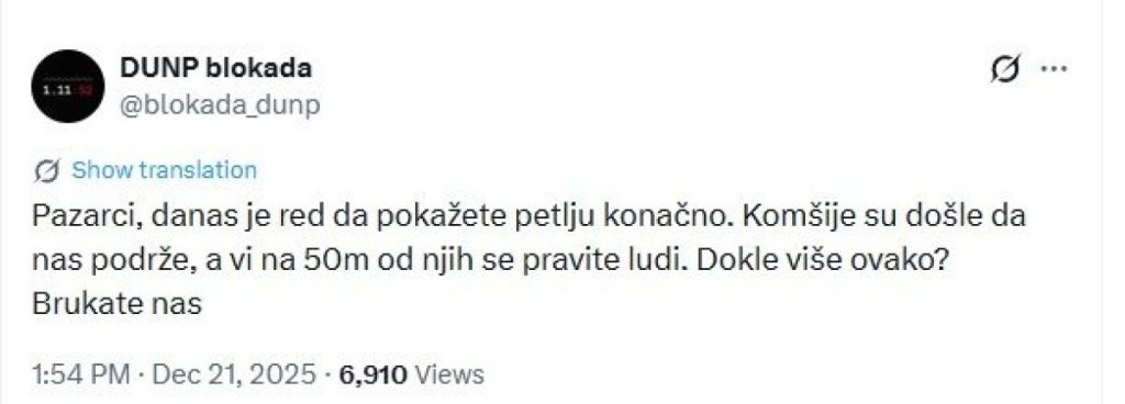 Blokaderi iz Novog Pazara sami priznaju da nemaju podršku građana Pazara! Da se svi prave ludi a da su na ulicama samo blokaderi koje su dovukli iz čitave Srbije!