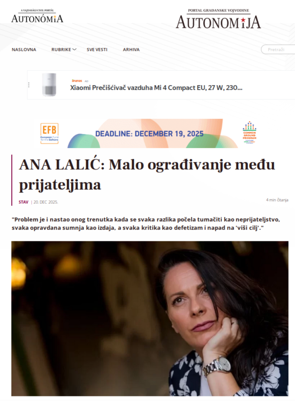 - Jer kada se ograđivanja personalizuju, a imena i prezimena „izdajnika“ javno saopštavaju pod paušalnim optužbama, to više nije taktika distanciranja. To je javno targetiranje, „šejmovanje“ i degradiranje pojedinca. U društvu u kojem je javno inkriminisanje „izdajnika“ modus operandi režima, to nije ni neutralan ni naivan način - i inače vrlo jednosmerne - komunikacije sa javnošću. Kao neko ko godinama prolazi kroz brutalnu dehumanizaciju i javne optužbe - samo sa druge strane - stajem u odbranu principa: niko ne sme biti meta bez jasnih dokaza i mogućnosti odbrane - piše ona.