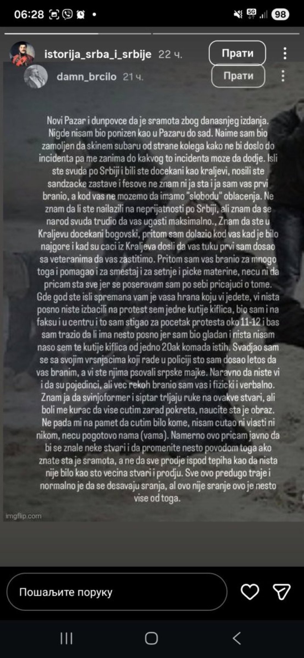 U narednoj objavi Brković otkriva i da su ga njegovi zgubidani optuživali da nije student, što je samo još jedan dokaz u nizu u kojoj meri se oni međusobno ne podnose, ne tolerišu i optužuju za sve i svašta.