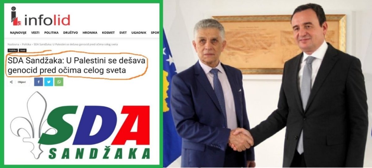 Treći antisemitski faktor u Srbiji je islamska ekstremistička stranka SDA Sandžaka. Ta stranka je polufašistička, polu teroristička. Oni su npr. već 19.10.2023. godine, objavili saopštenje u kome optužuju Izrael za genocid. Saopštenje ima naziv: „SDA Sandžaka: U Palestini se dešava genocid pred očima celog sveta“. U tom saopštenju stoji: „Stranka demokratske akcije Sandžaka osudila je ubijanje civila u Palestini i napad Izraela na bolnicu u Gazi. Kao parlamentarna stranka koja štiti i zastupa interese građana Sandžaka i Bošnjaka u Republici Srbiji najoštrije osuđujemo svakodnevne napade oružanih snaga Izraela i ubijanje civilnog stanovništva u Palestini. Posebno osuđujemo smrtonosni izraelski napad na bolnicu u pojasu Gaze, gde je ubijeno preko 700 civila i ranjen veliki broj nedužnih ljudi, što je zločin protiv čovečnosti i poprima razmere genocida nad Palestincima u Gazi. Bošnjaci su narod nad kojim je počinjen genocid, mnogi zločini u Sandžaku i žrtve su organizovanog državnog terora u Srbiji te najbolje razumeju današnju sudbinu nedužnog civilnog stanovništva u Palestini. SDA Sandžaka je protiv upotrebe sile i nasilja za nametanje političkih rešenja i ostvarenje političkih ciljeva".