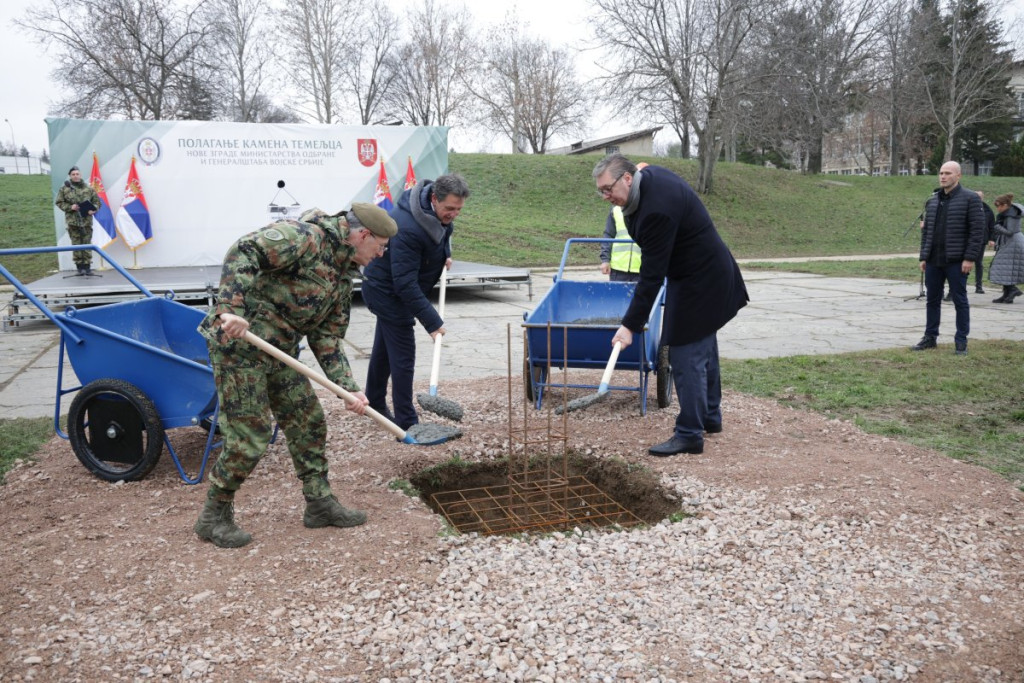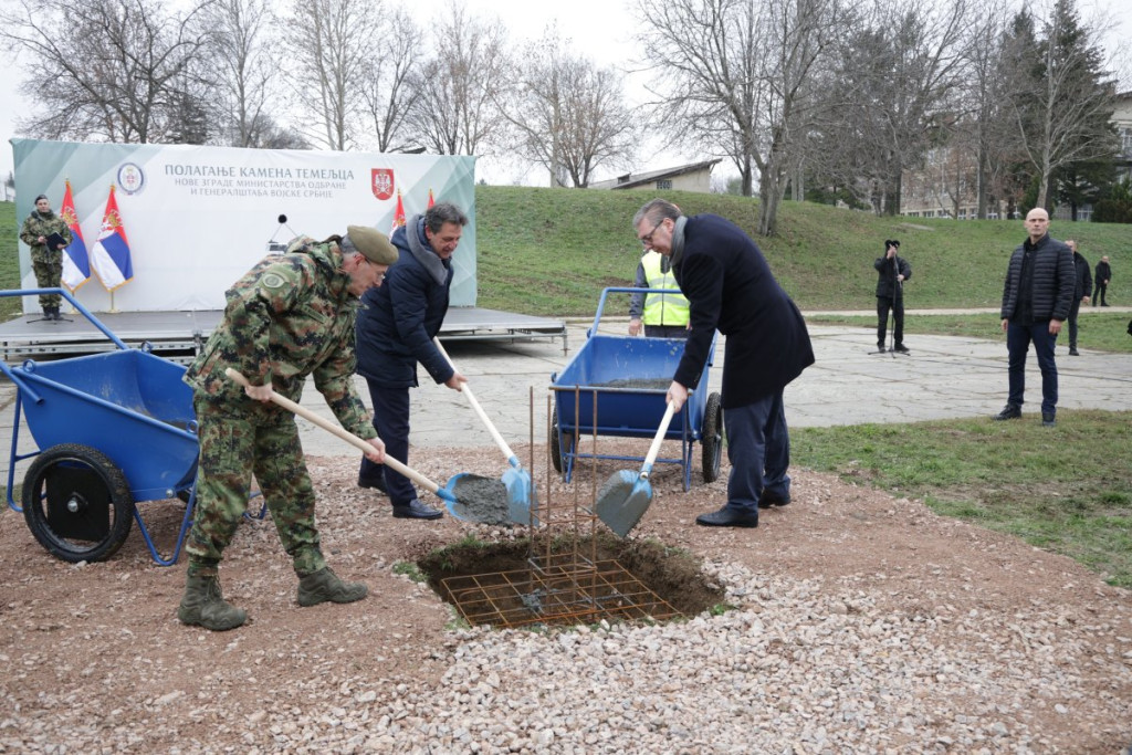 - Želim svima koji učestvuju u radovima mnogo uspeha. Koliko sam razumeo, unutar vojske su izabrali kako će te zgrade izgledati. Da budu na ponos Srbiji. Mi moramo sebe da čuvamo, niko drugi nas čuvati neće, živimo u ne lakom okruženju, i svoju zemlju, narod, porodicu i društvo moramo da sačuvamo, i to nema cenu - naglasio je Vučić.