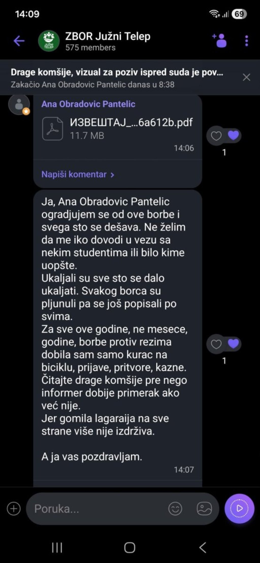Informer je došao do prepiski blokadera iz viber grupe "Zbor Južni Telep" po kojima se vidi da su se zgubidani iz Novog Sada potpuno raspali, a u kojoj meri su zaratili i koliko se međusobno ne podnose svedoče optužbe za prevare, zloupotrebe, laži...