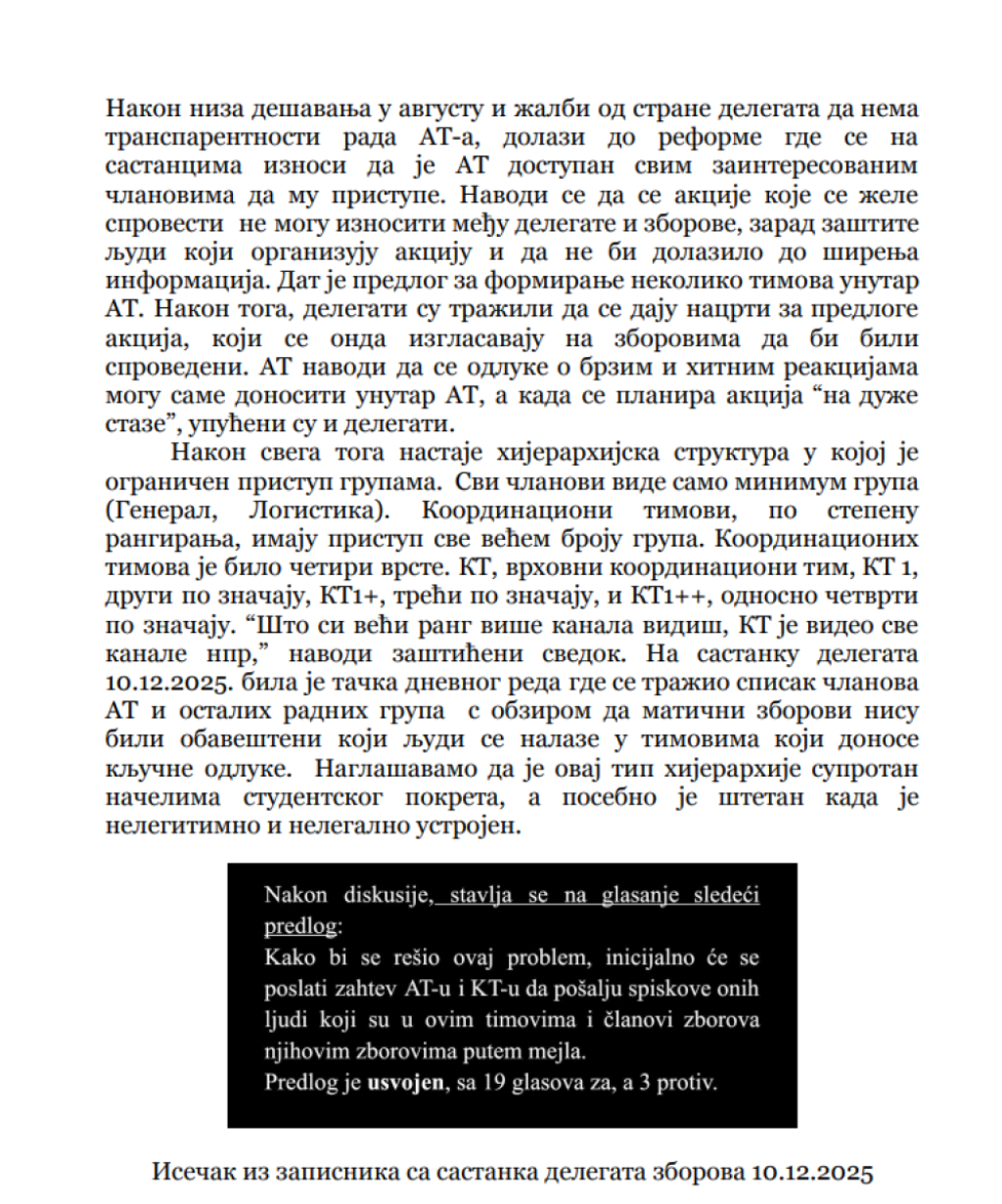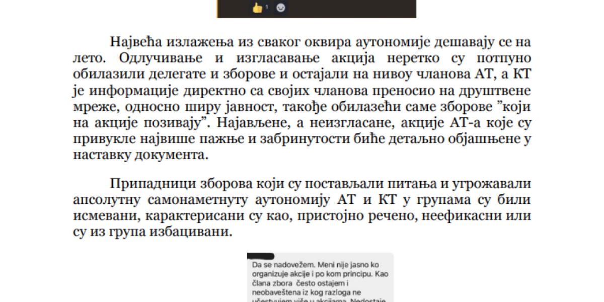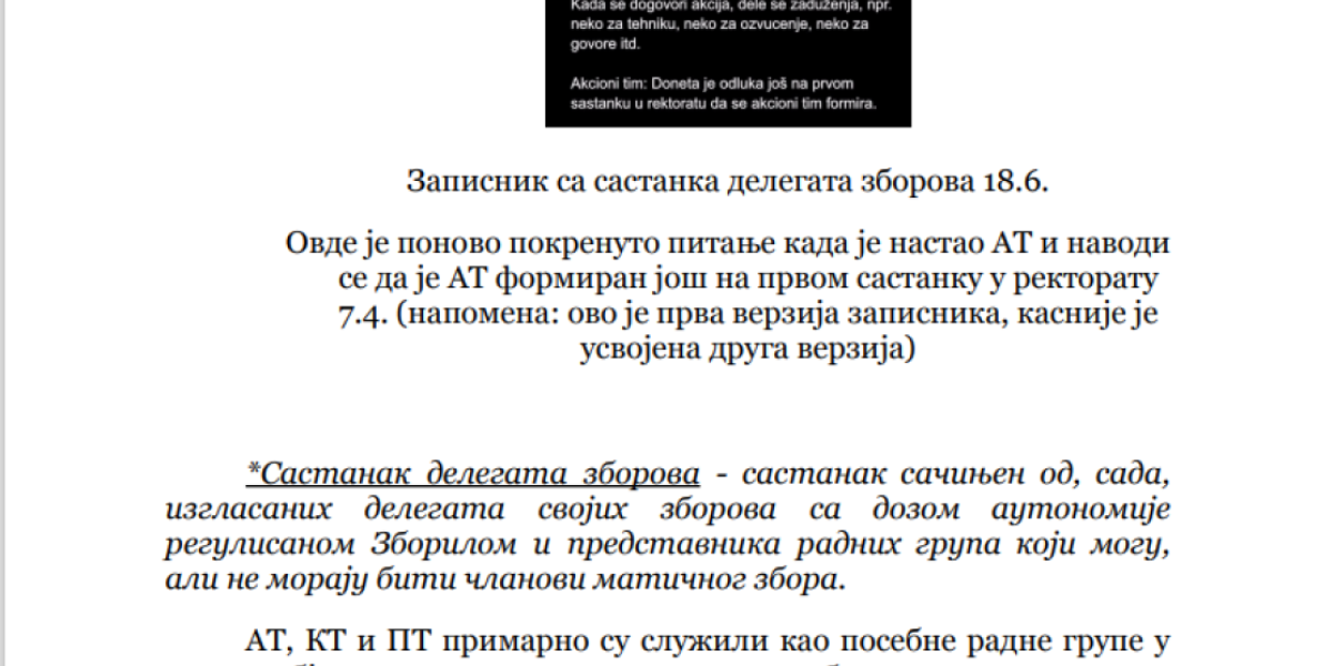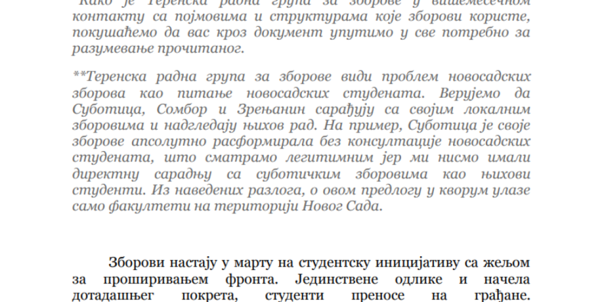 Da više ne mogu da se sastave i da u njihovim redovima ne postoji ono "cveće i proleće" kojim su se toliko dičili pre godinu dana, kada su počeli rušenje Srbije na ulicama gradova širom zemlje, pokazuje i dokument koji je sastavila grupa takozvanih studenata, a koji je usmeren protiv "zborova" sa sve dokazima i svedočenjima "zaštićenih svedoka". Tema ovog dokumenta, u koji je Informer imao uvid, je jedna - "kako su zborovi privatizovani i samovoljno rade šta hoće, a pozivaju se na "studente".