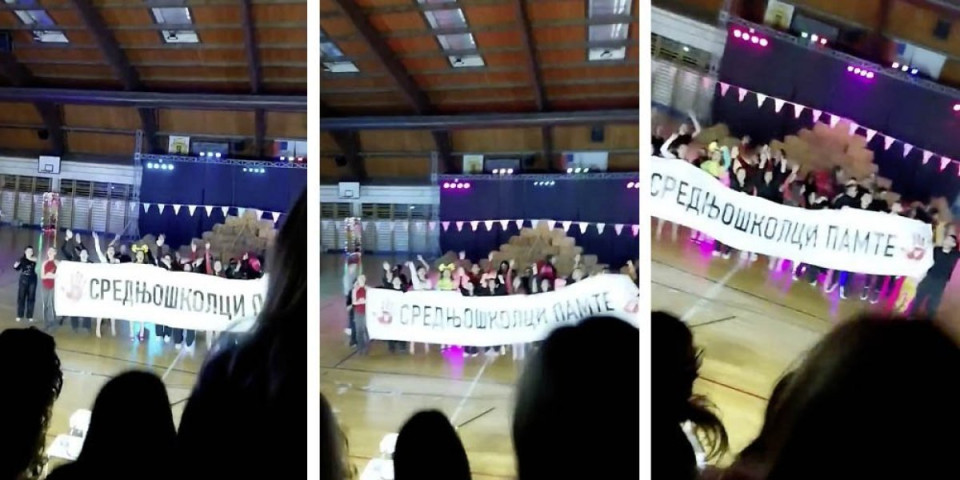 Da čitav ovaj skandalozni performans bude još bizarniji, učenici, koji su najverovatnije izvodili predstavu, podigli su transparent na kom je bilo ispisano "srednjoškolci pamte" sa sve dve utisnute krvave šake na njemu.