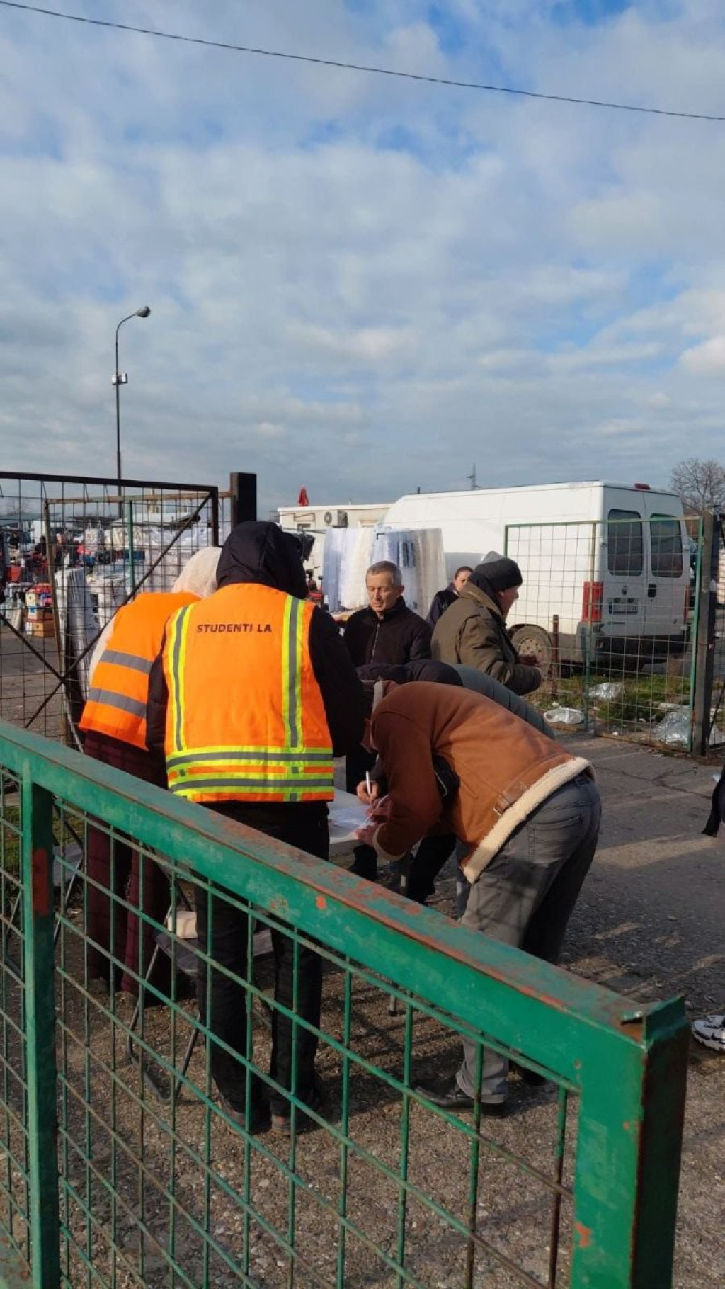Vladimir Savić, reporter Informer TV, pokušao je da uzme izjavu od blokadera za štandom, ali oni nisu hteli da pričaju.