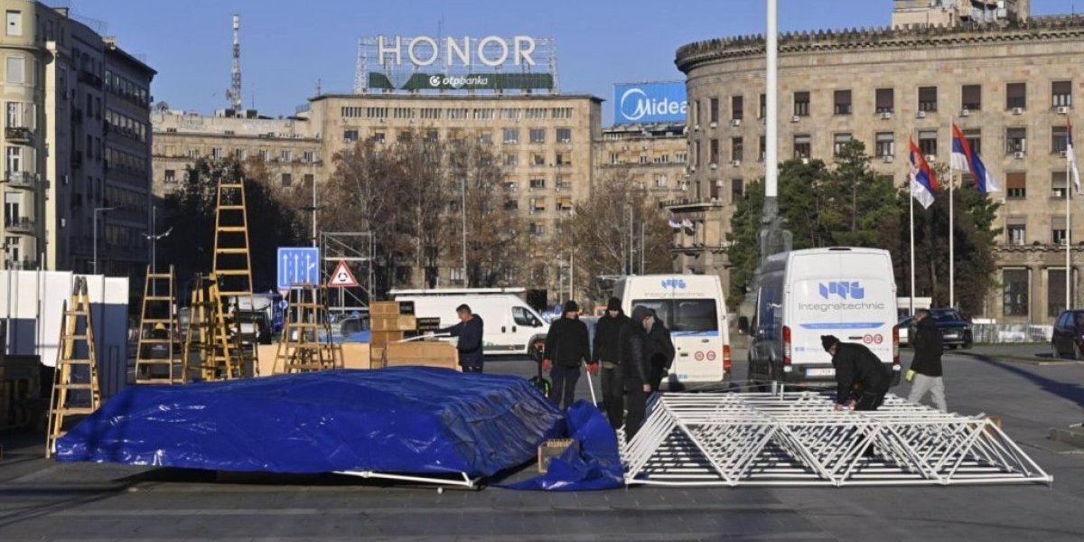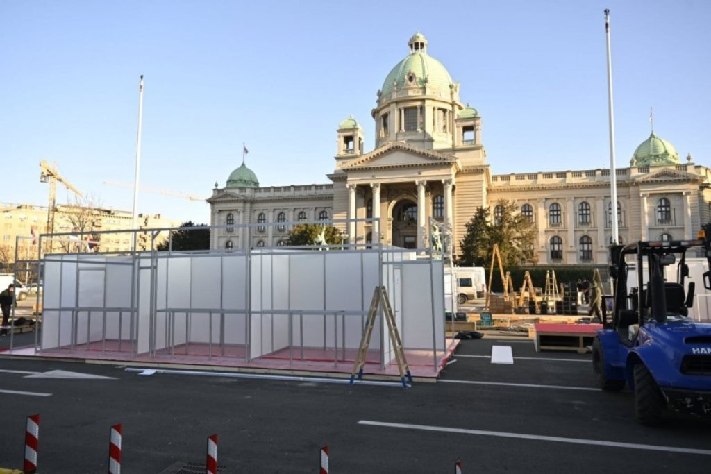 Nakon što su uklonjeni šatori ispred Skupštine Srbije, na molbu predsednika Srbije Aleksandra Vučića, danas se vrše pripreme za Božićno selo koje će biti otvoreno za sve građane u narednim danima.