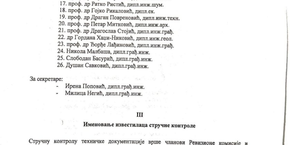 Upravo je dvojac koji čine rektor Vladan Đokić i Vladan Kuzmanović, bio deo tela koje je imalo zadatak da razmatra i kontroliše projekte od izuzetnog značaja za bezbednost građana. Međutim, ono što izaziva ozbiljna pitanja jeste činjenica da Reviziona komisija, u kojoj su učestvovali, nikada u svojim primedbama nije uputila investitora i izvođača da provere statiku nadstrešnice.
