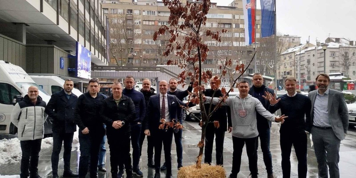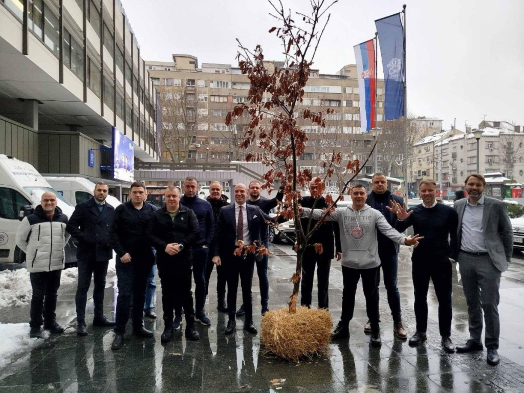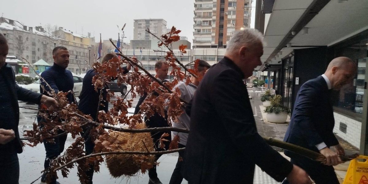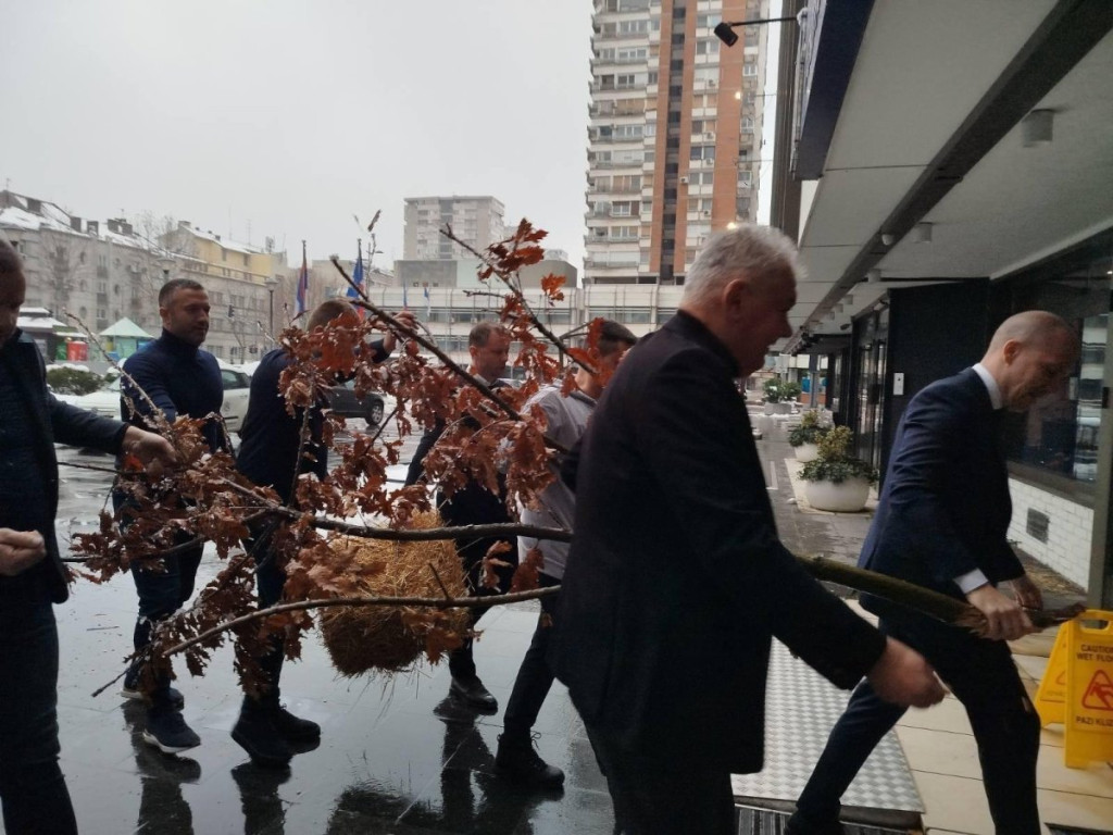 Predsednik Izvršnog odbora Banke Poštanska štedionica Bojan Kekić uneo je jutros badnjak u zgradu te kompanije.
