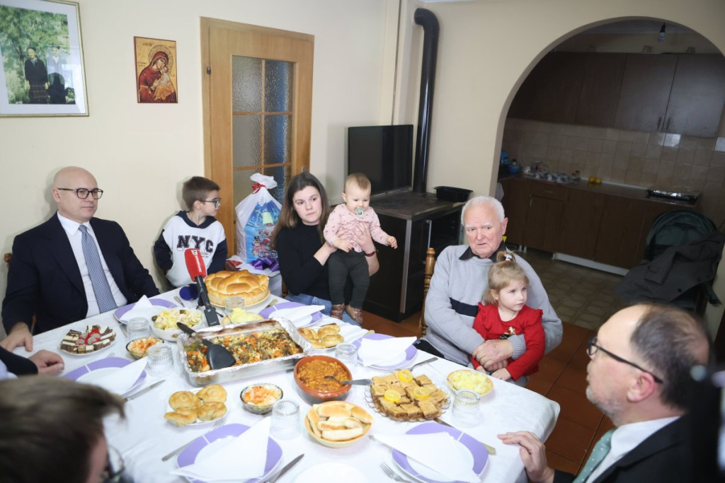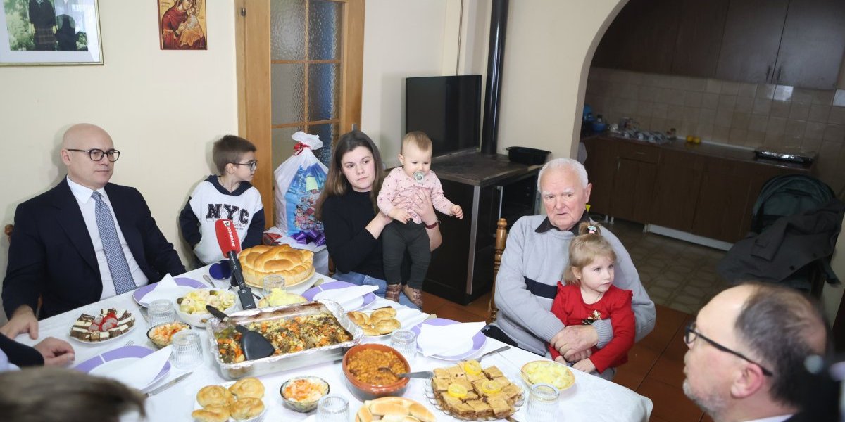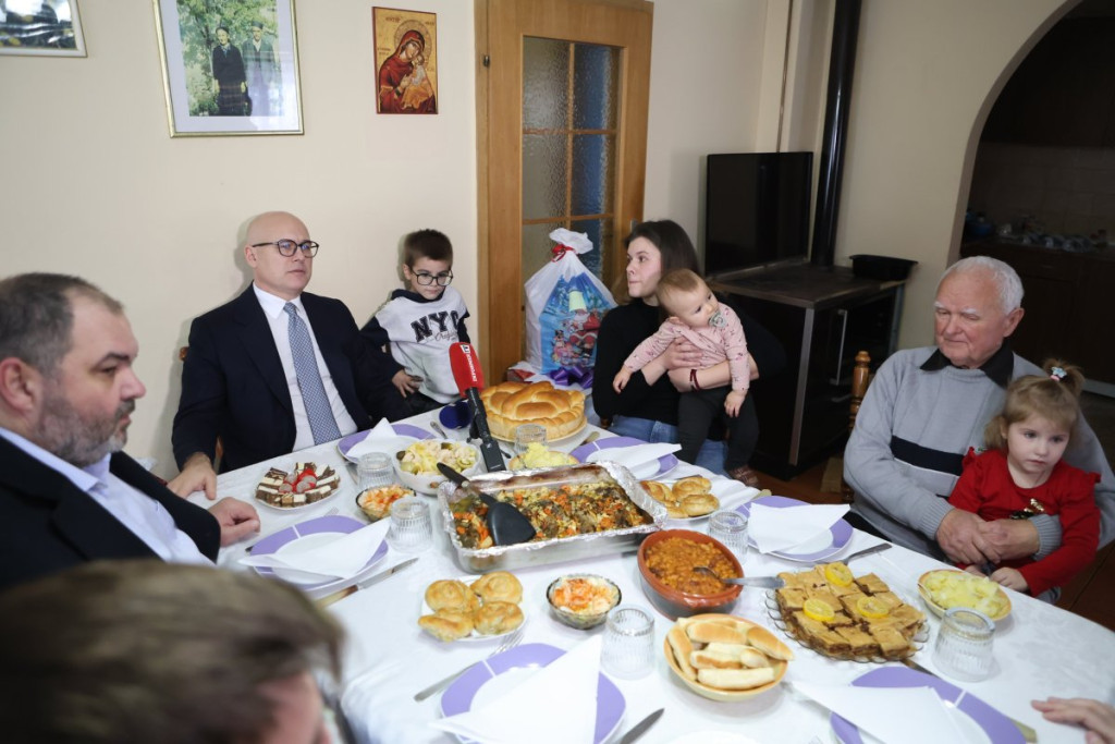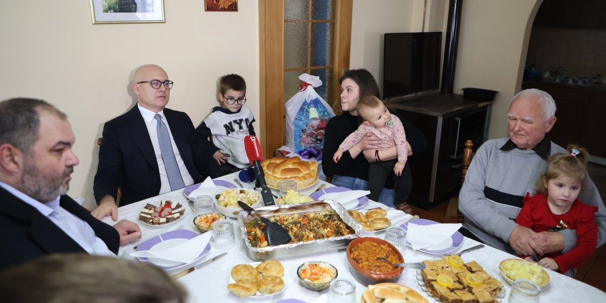 On je razgovarao sa članovima domaćinstva, a najmlađima od njih dao i novogodišnje paketiće. Vučević je poručio da bi mogao da bude Deda Mraz.