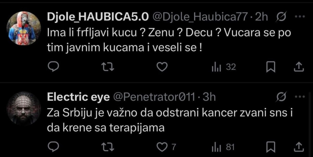 Njen komentar je usledio nakon najgnusnijih poruka, tekstova i uvreda upućenih predsedniku države tokom praznika.